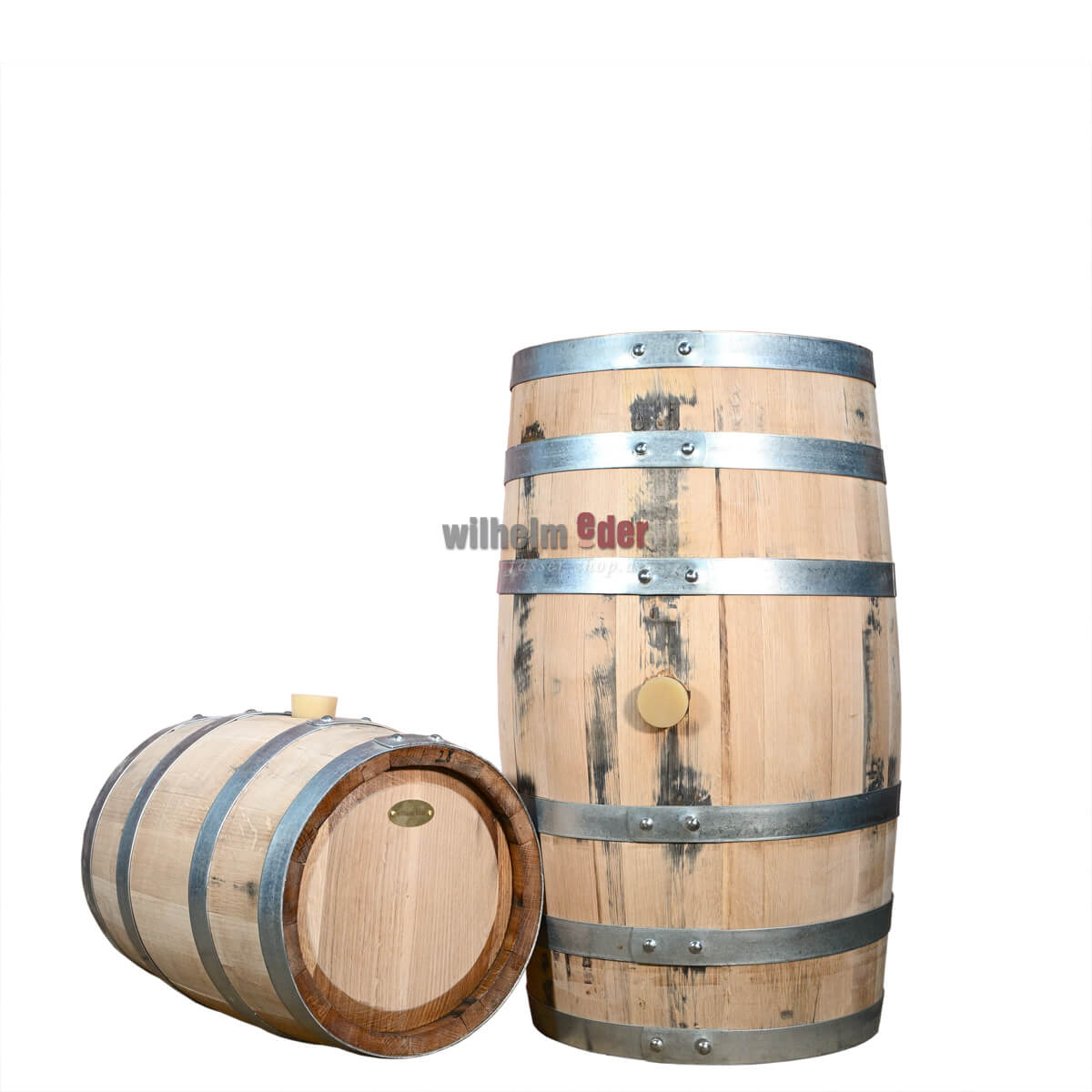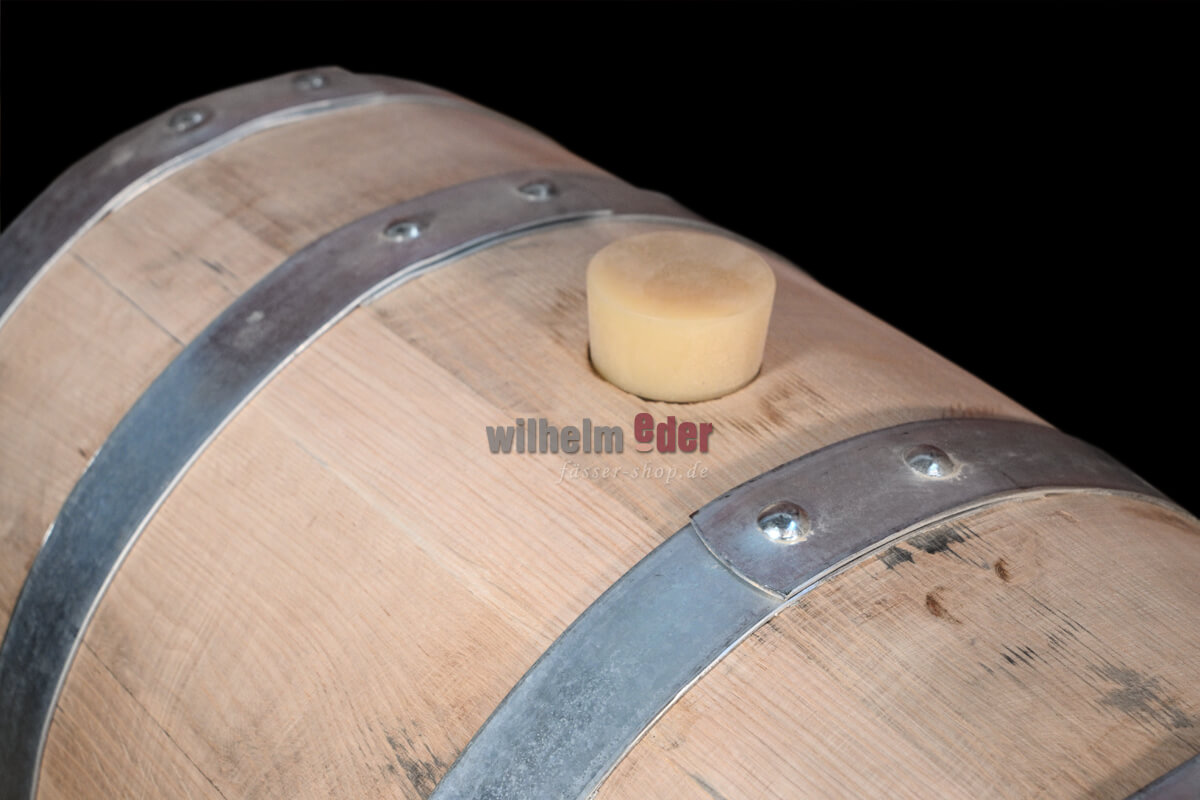 Fass wird mit Holz- oder Silikonspund ausgeliefert. Einen Hahn können Sie bei Bedarf unter Zubehör wählen.