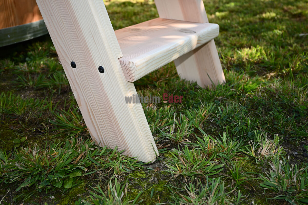 Bitte beachten Sie, dass jede Leiter ein Unikat ist und die Maße je nach Badebottich angepasst werden. Durch das Naturprodukt Holz entstehen Abweichungen in Farbe und Maserung.