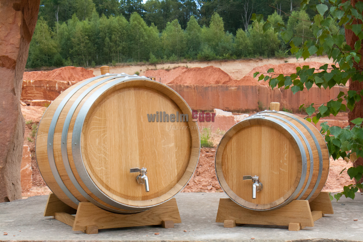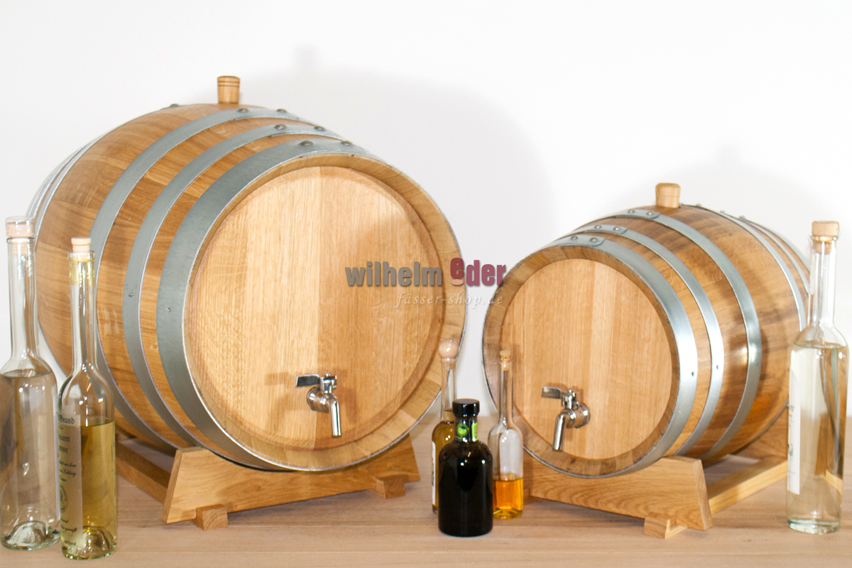 Die Fässer sind aus wertvollem Eichenholz in heller Optik hergestellt. Ideal zur Lagerung von wertvollen Bränden, Likören oder Destillaten, die sich nicht mehr verändern sollen und stilecht ausgeschenkt oder aufbewahrt werden sollen.