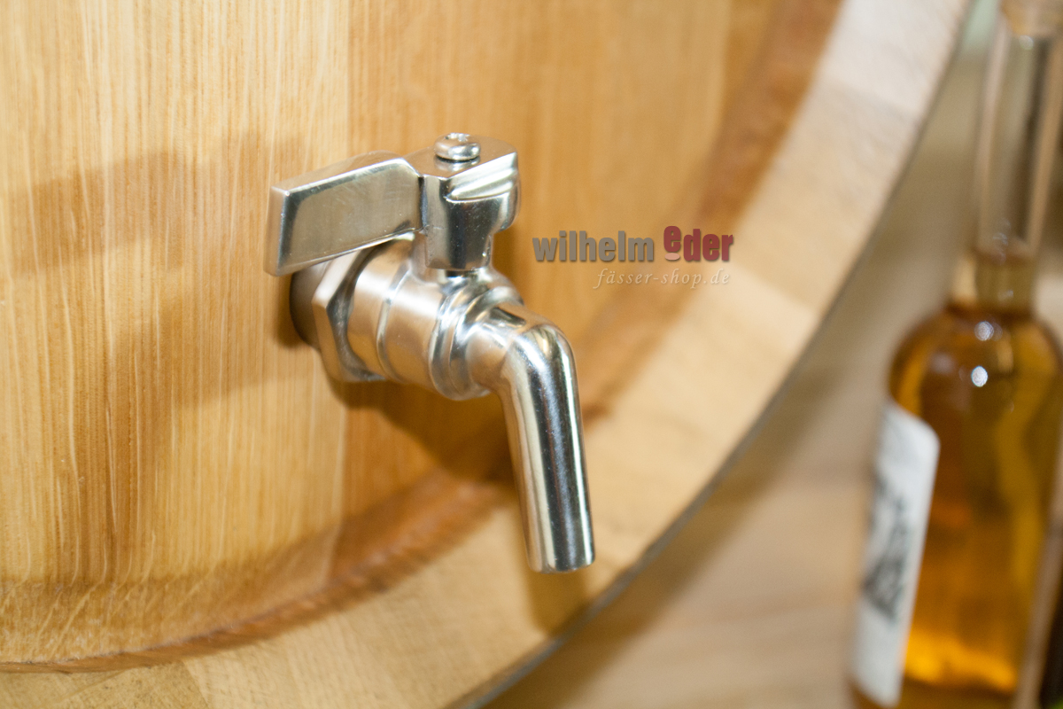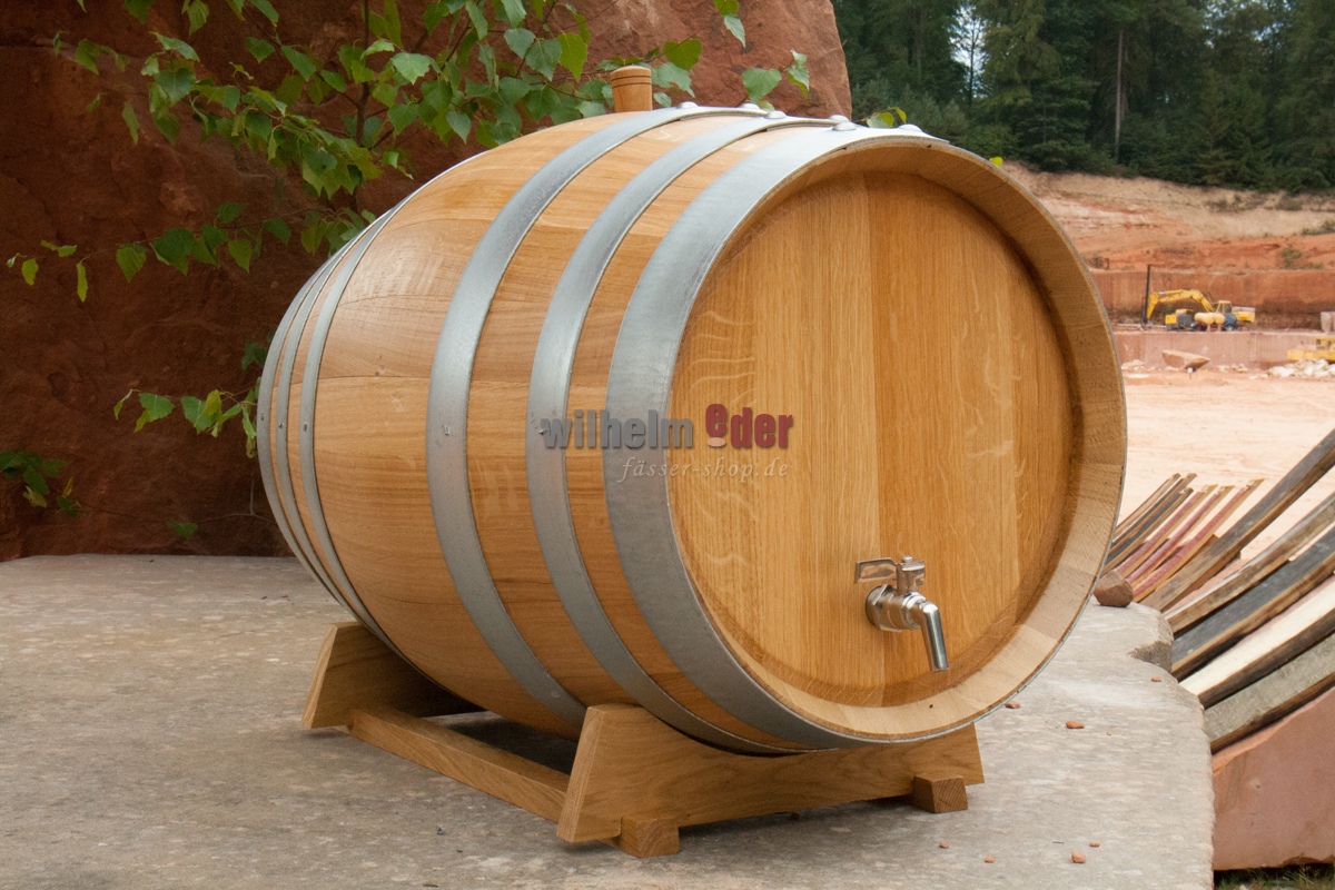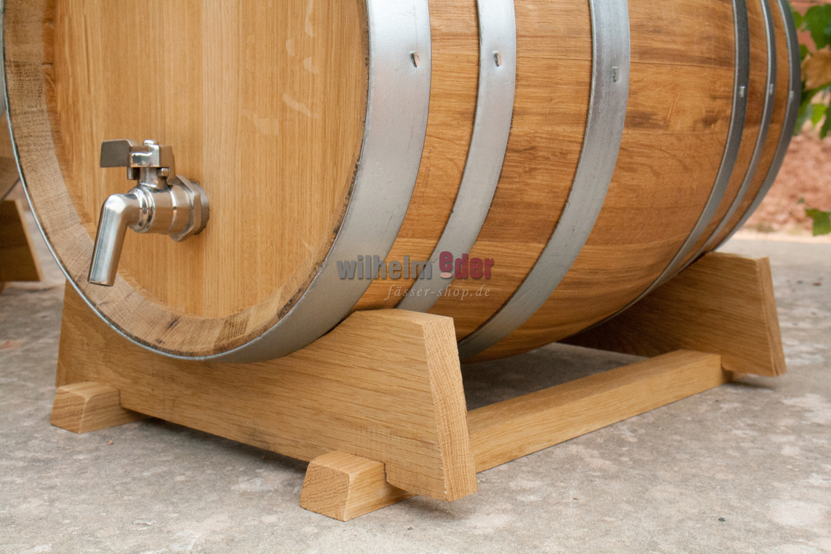 Eichenfass mit innerer Edelstahlblase komplett mit Bock, Edelstahlablaufhahn und Spund.