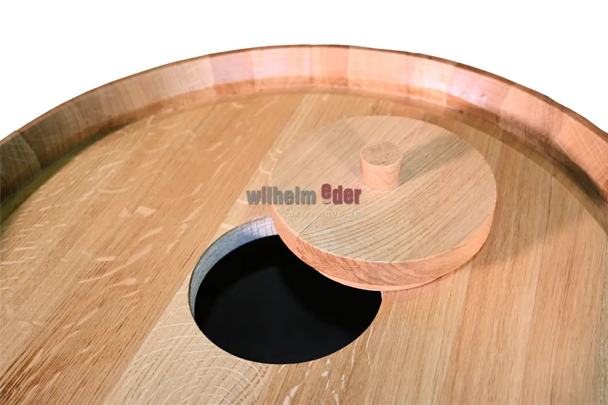 Der Bottich nach dem Motto „Back to Nature“ wird nach Küfertradition hergestellt und gebunden mit galvanisierter Bereifung.