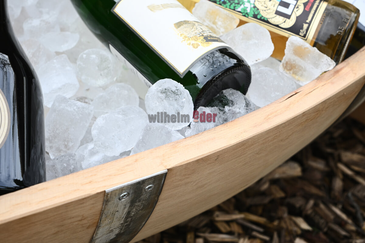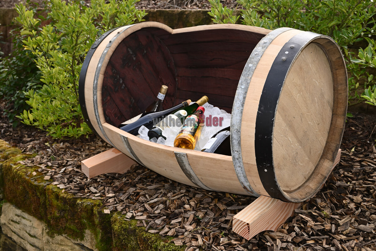 Apropos Weinflaschen: umgelegt und auf Holzfasslager platziert kann dieses Dekofass zum Hingucker einer jeden Gartenparty oder Hochzeit werden. Mit Eis befüllt finden hier so einige Sekt-, Wein- oder Bierflaschen ihren kühlen Platz.