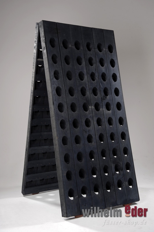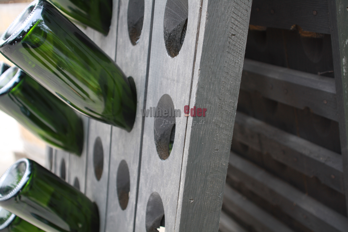 Seit jeher und jahrhundertelang dienen diese originalen Rüttelpulte bei der Herstellung von Champagner zum Abrütteln der Hefe in den Flaschenhälsen.
