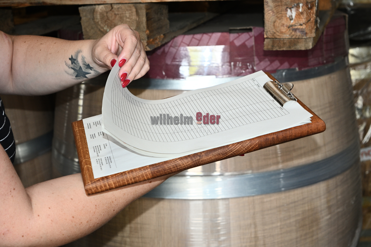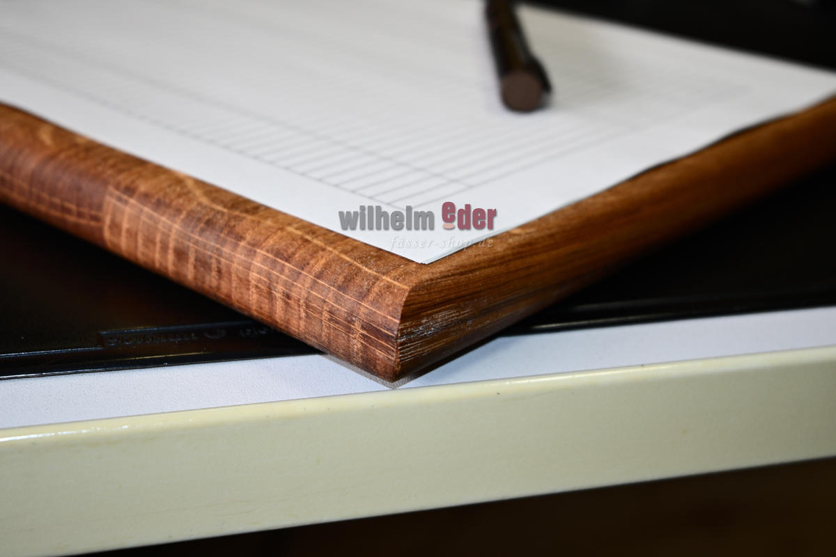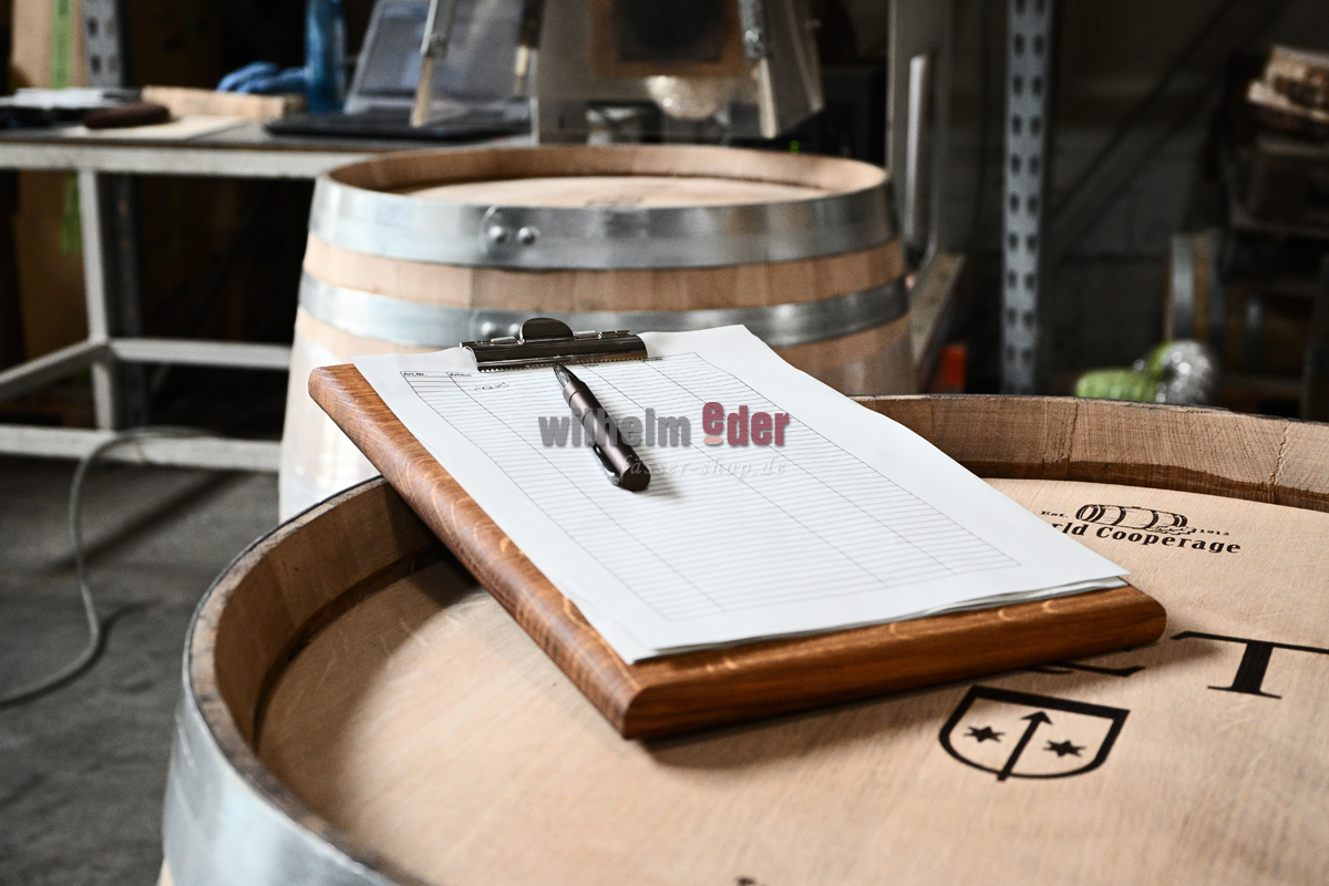 Klemmbrett aus ehemaligen Rotweinfassdauben.