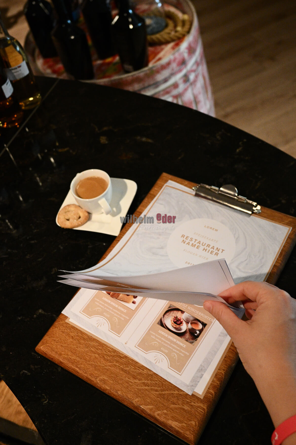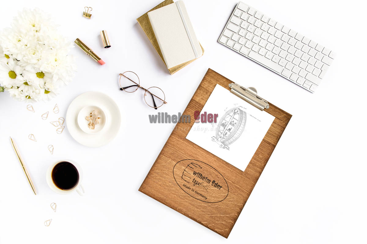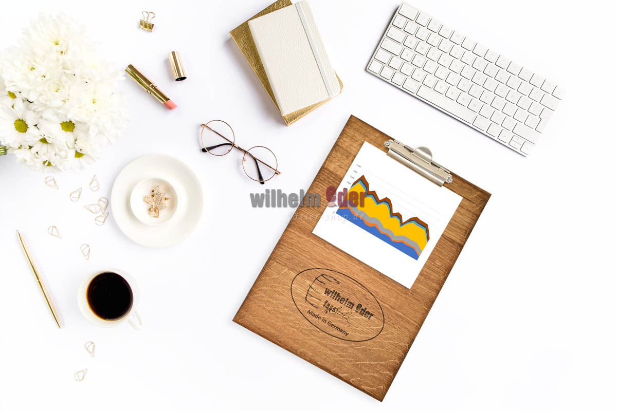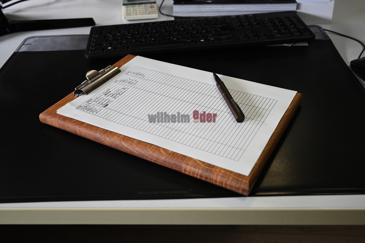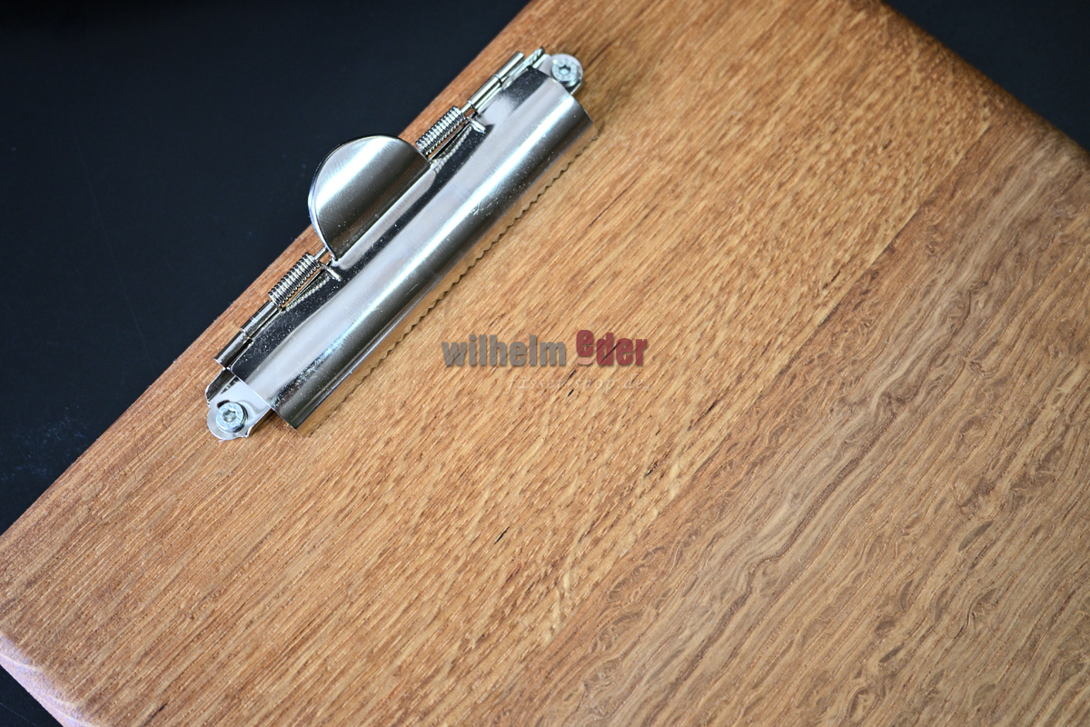 Im Preis enthalten ist ein individuelles Laserbranding. Wir benötigen hierzu lediglich eine Vorlage Ihrerseits, ausschließlich in schwarz und weiß, in Form einer PDF-Datei, per E-Mail an laser@wilhelm-eder.de (Bitte mit Angabe der Bestellnummer). Die langlebigen Klemmbretter werden mit Öl veredelt.
