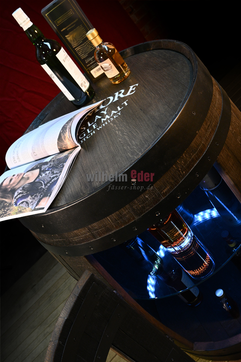 Single Malt Regalfass, gefertigt aus einem original Hogshead 250 l Fass aus einer Single Malt Belegung.