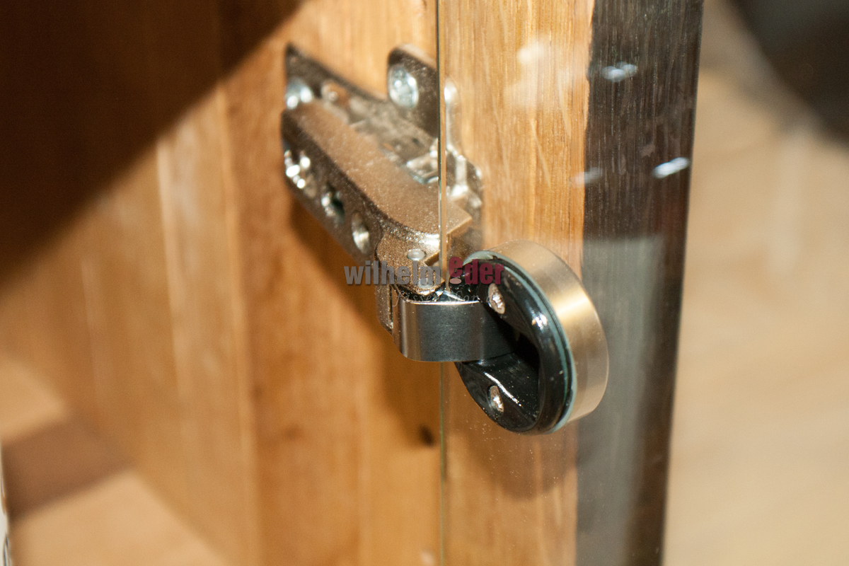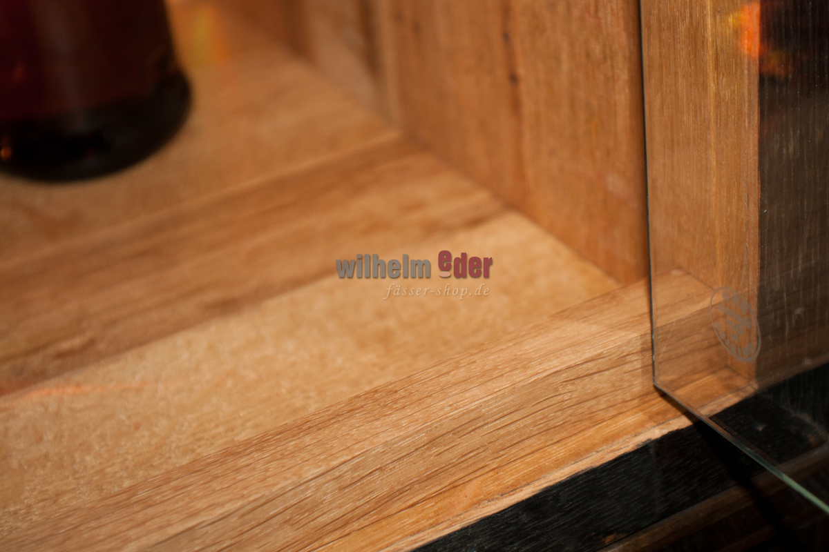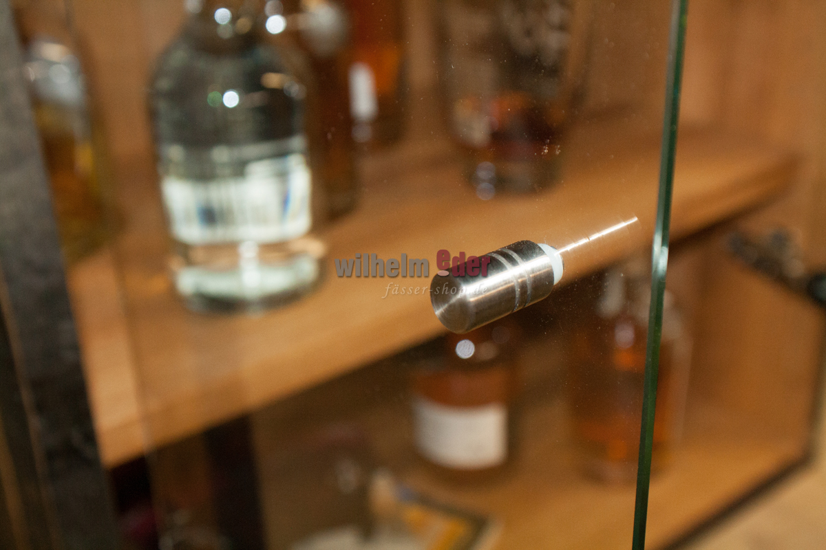 Der FassStolz® Barschrank ist mit zwei Glastüren ausgestattet, die jeweils mit zwei Magnethalterungen befestigt wurden. Die Einlegeböden des Schrankes können durch eine Lochreihe individuell an die Höhe Ihrer Flaschen und Gläser angepasst werden.