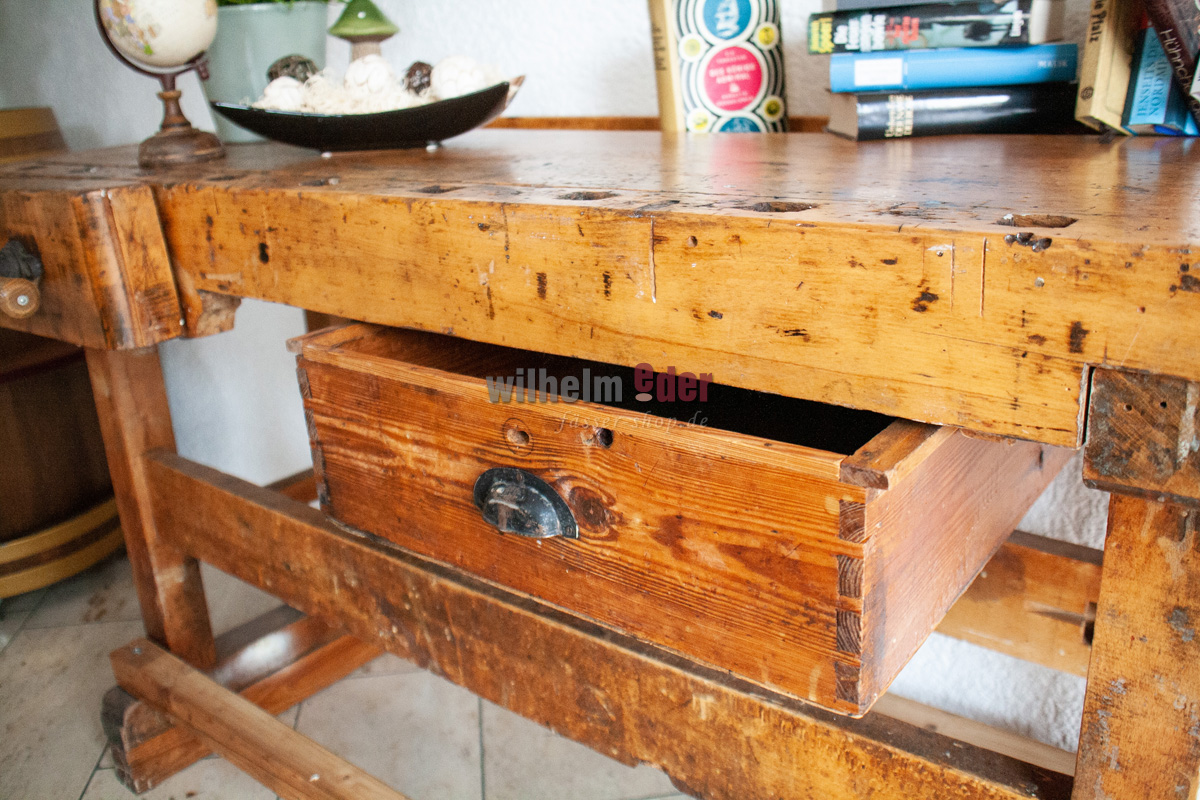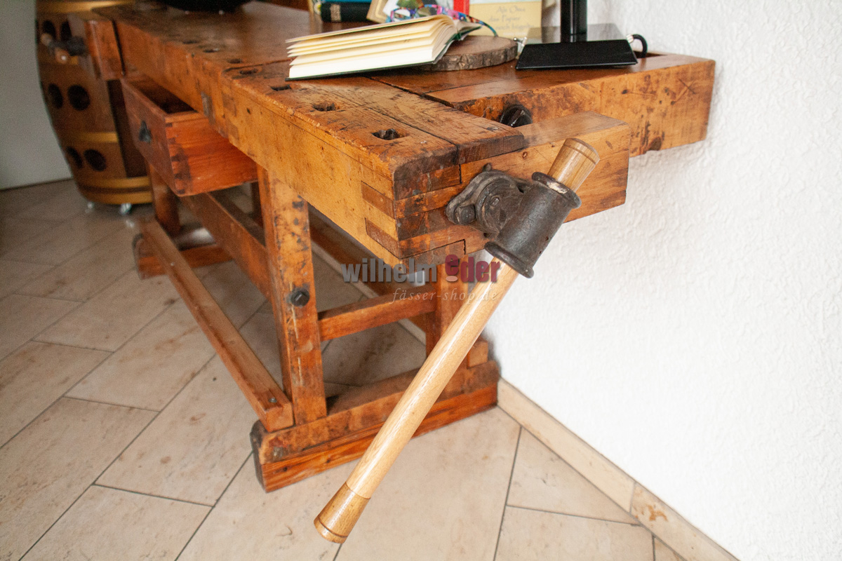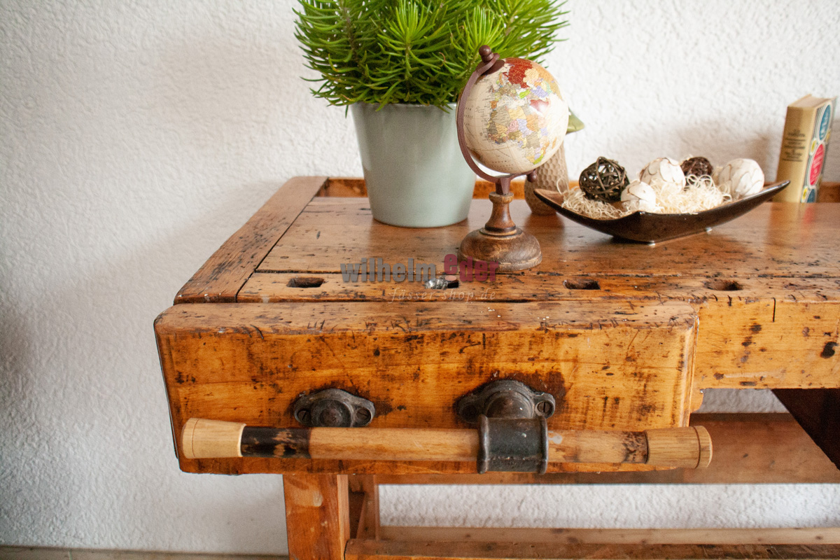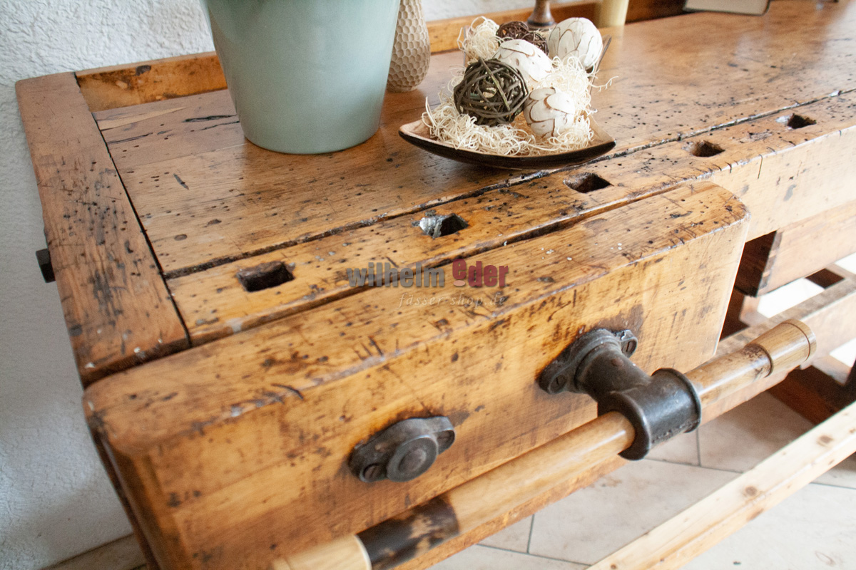 Die Hobelbänke sind Einzelstücke und nicht nachbestellbar, jede Hobelbank hat durch den jahrzehntelangen handwerklichen Einsatz Ihre eigene Geschichte und Gebrauchsspuren.