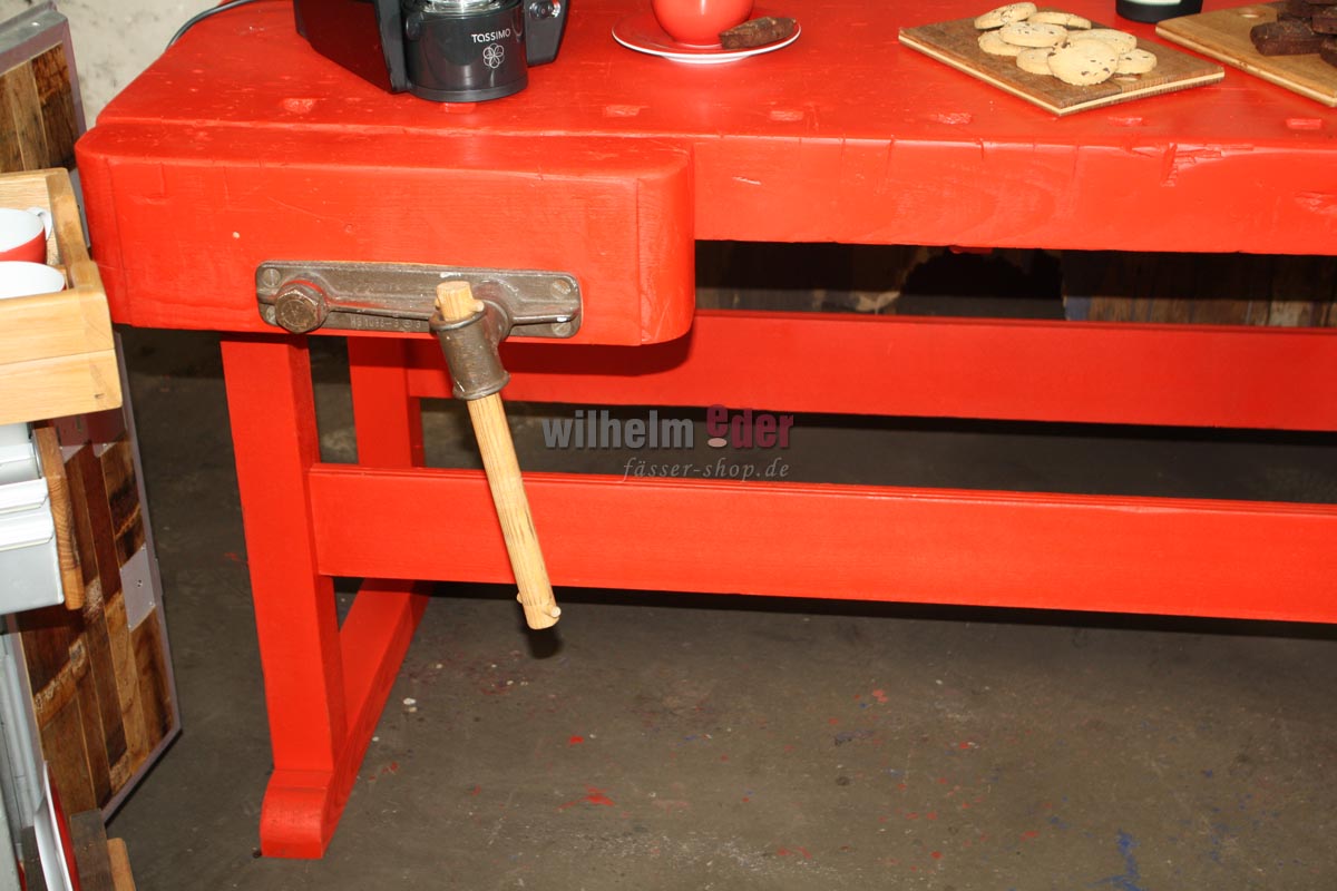 Wir haben diese Hobelbank für Sie rot lackiert.