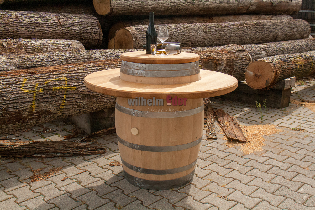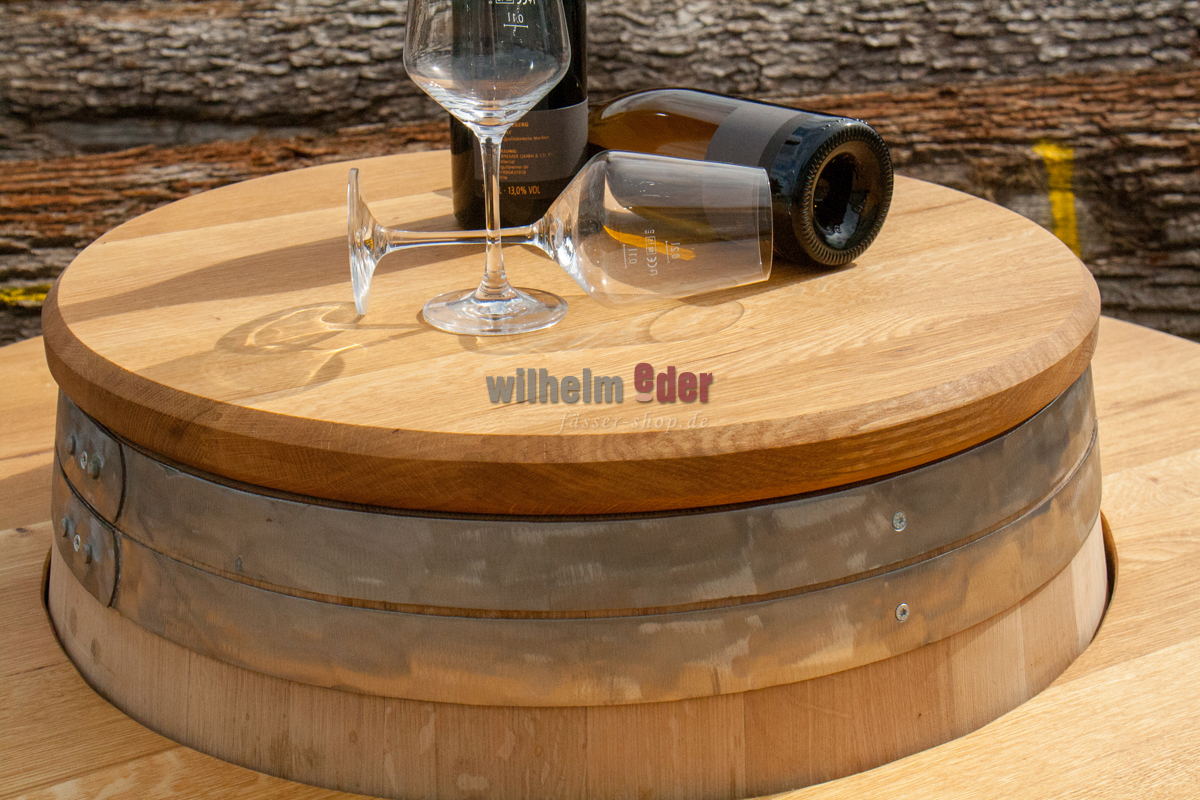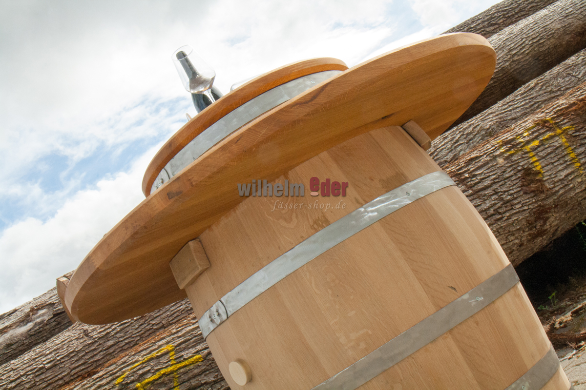 Der Verkaufspreis beinhaltet die äußere Platte zum Auflegen und die kleine Platte für den Fasskopf. Das Fass selbst ist unter Zubehör bestellbar.