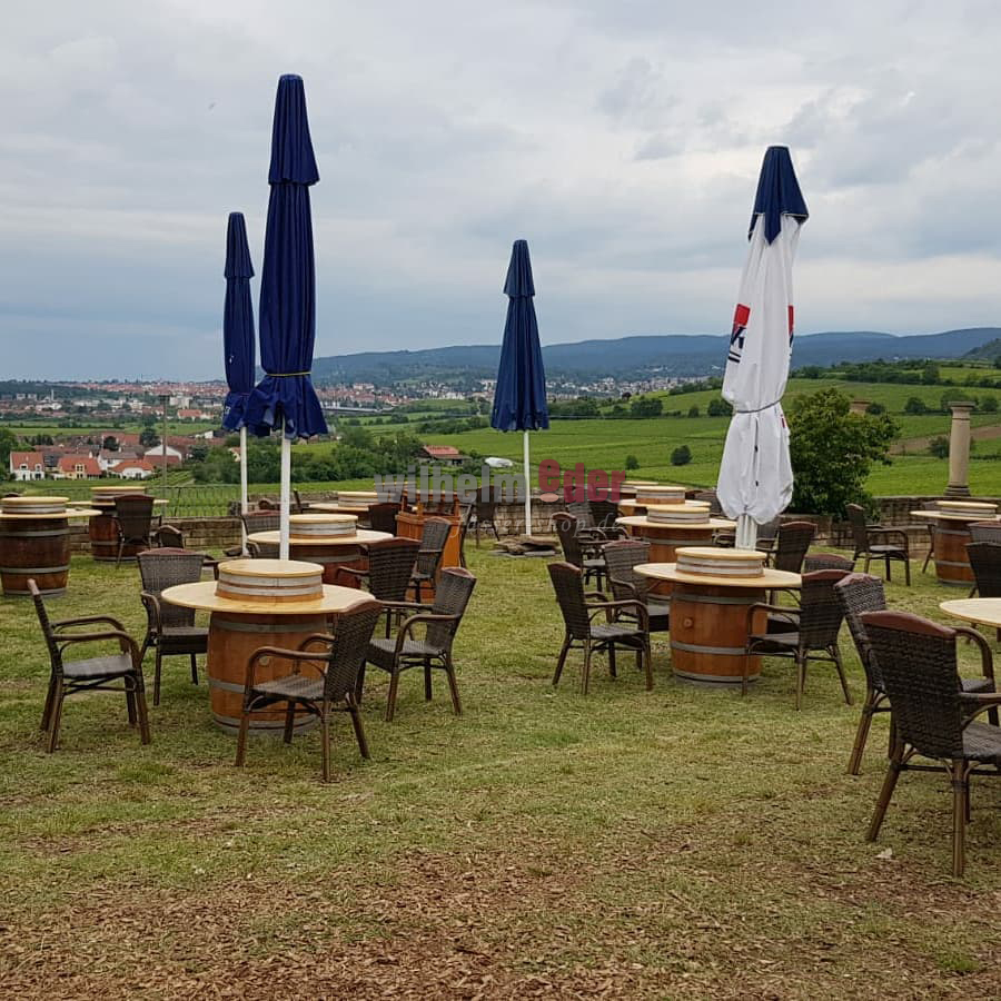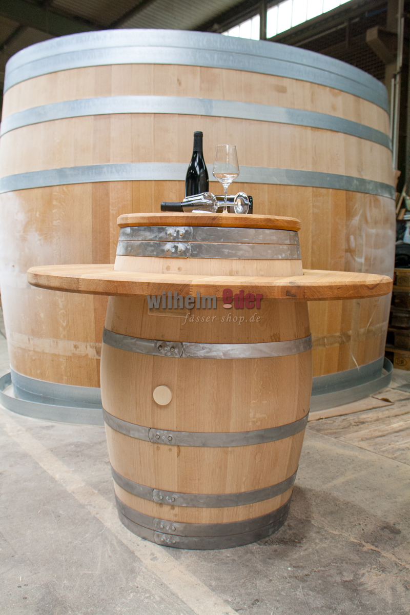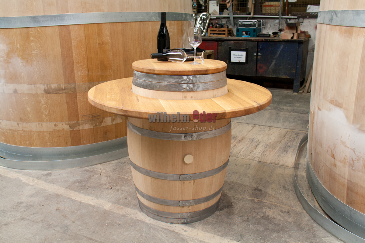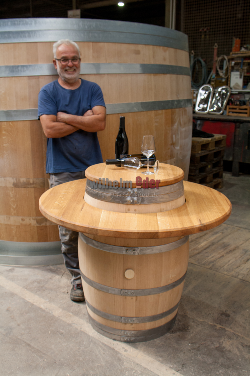 Der Verkaufspreis beinhaltet die äußere Platte zum Auflegen und die kleine Platte für den Fasskopf. Das Fass selbst ist unter Zubehör bestellbar.
