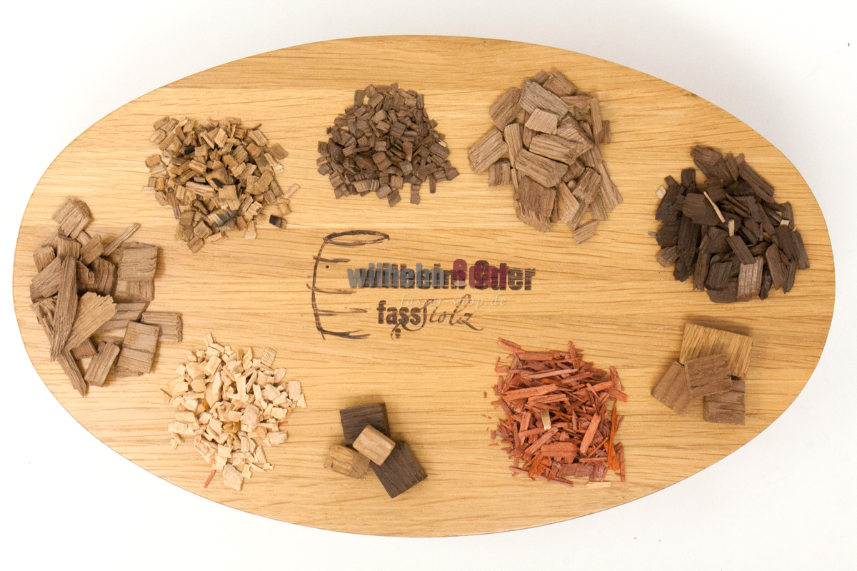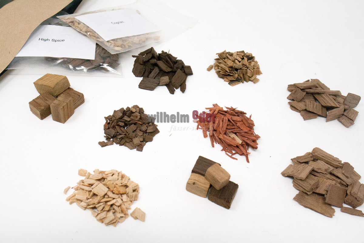 Wir stellen Ihnen zehn verschiedene Proben von Holzalternativen (Chips und/oder Cubes) zusammen. So können Sie die unterschiedlichen Holzarten, Größen und Toastings testen.
