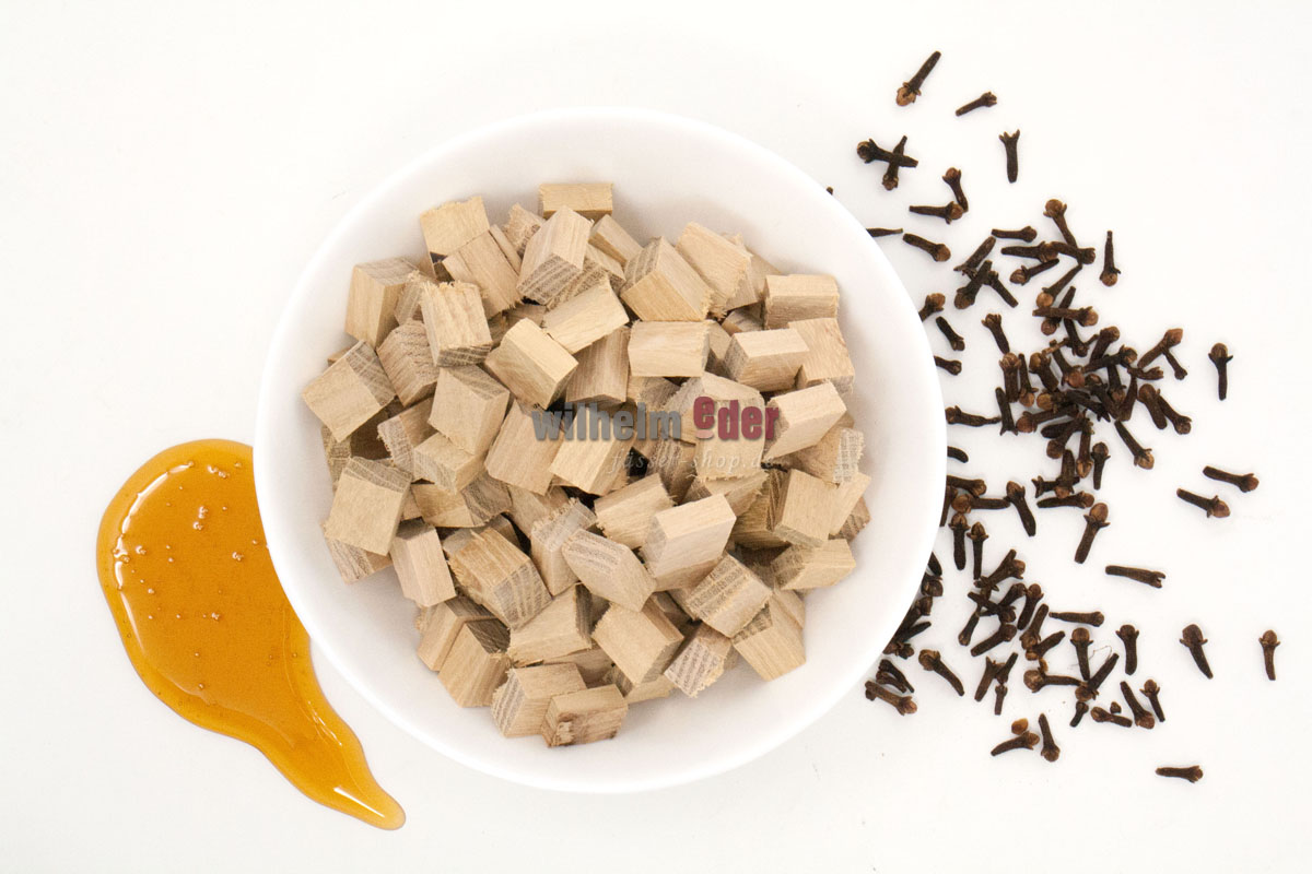 Stark getoastet geben die Cubes oder Chips, speckige starke Raucharomen.