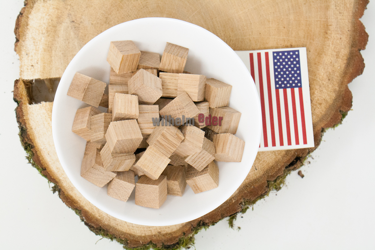 Die Cubes aus amerikanischer Eiche produzieren wir aus Daubenholz „Quercus Alba“ aus den Ozarks in Missouri.