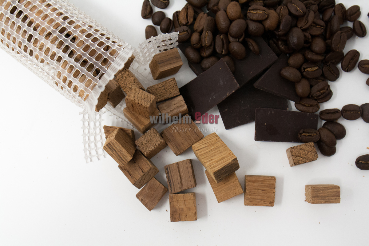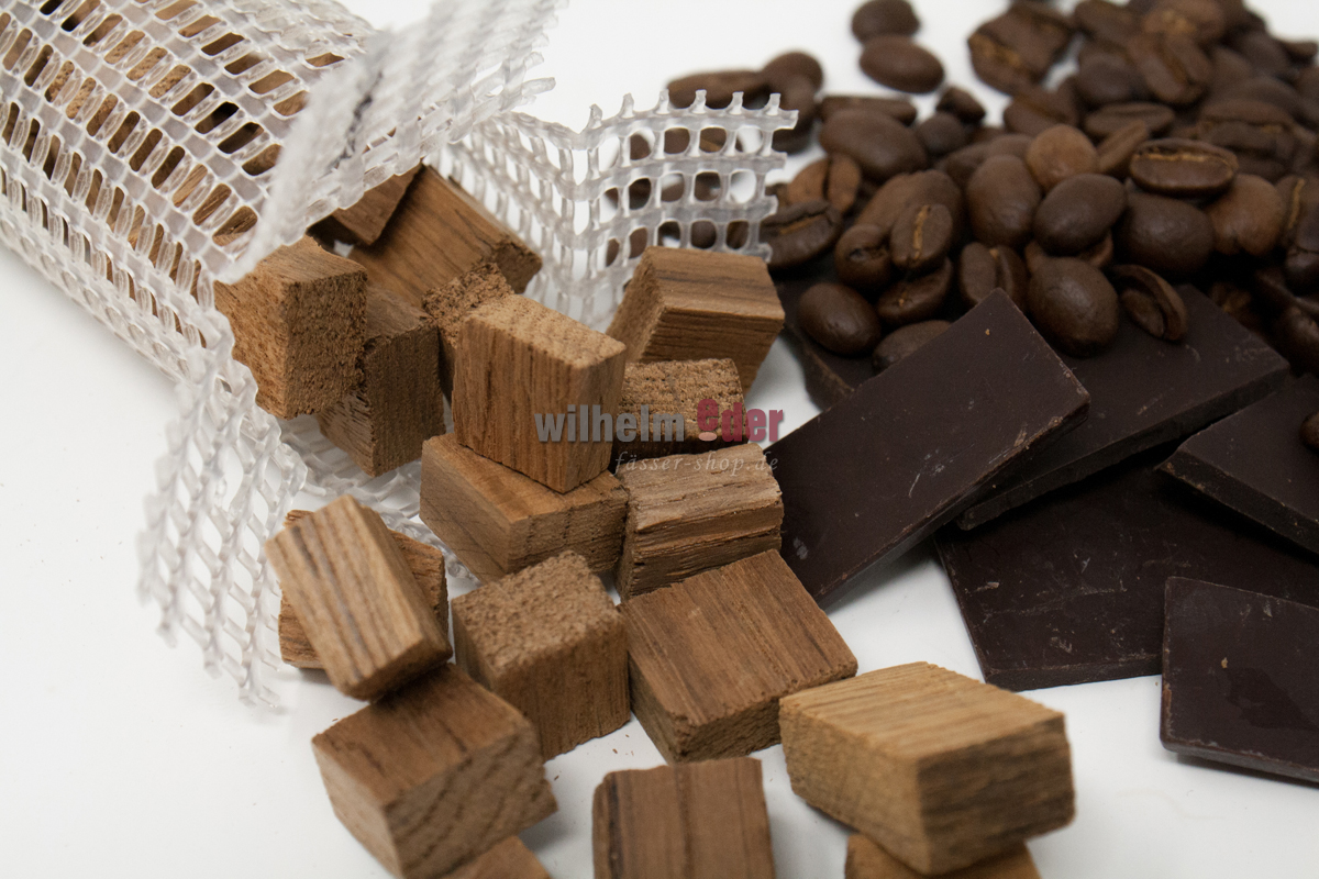 Befüllt mit High Mocha Cubes ca. 200 g. Geben dem Wein Body, Körper, dunkle Kirschnoten! Französiche Eiche,