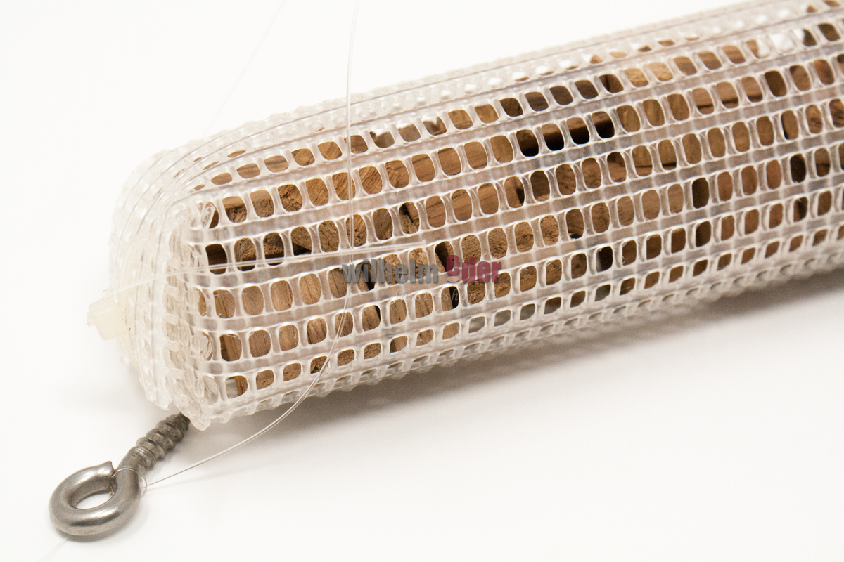 Gewobener Einsatz zum Befüllen mit Chips und Cubes zum Einhängen in ein Barriquefass.