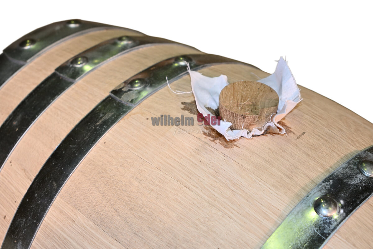 Fass wird mit Holz- oder Silikonspund ausgeliefert.