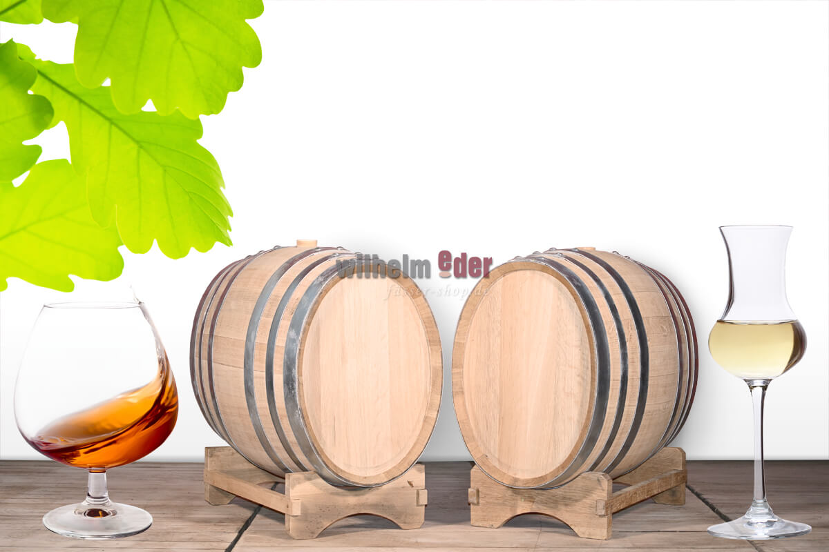 Geliefert werden die Fässer mit Bock und Holzspund.