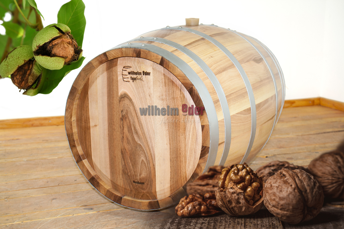 In unserer Küferei in hochwertiger Handarbeit hergestellt aus feinjährigem, luftgetrocknetem Walnussholz – hoch aromatisch!