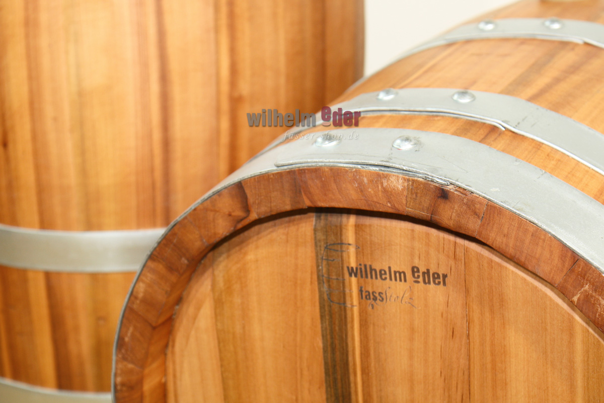 Ein Fass, hergestellt in unserer Küferei unter der Eigenmarke EDER - FassStolz®. Das Fass besteht ausschließlich aus dem luftgetrockneten Edellaubholz der Elsbeere. Ausgestattet ist das besondere Destillatfass mit feuerverzinkter Bereifung, außen mit atmungsaktiver, für Lebensmittel zertifizierter, Lasur behandelt und innen leicht getoastet.