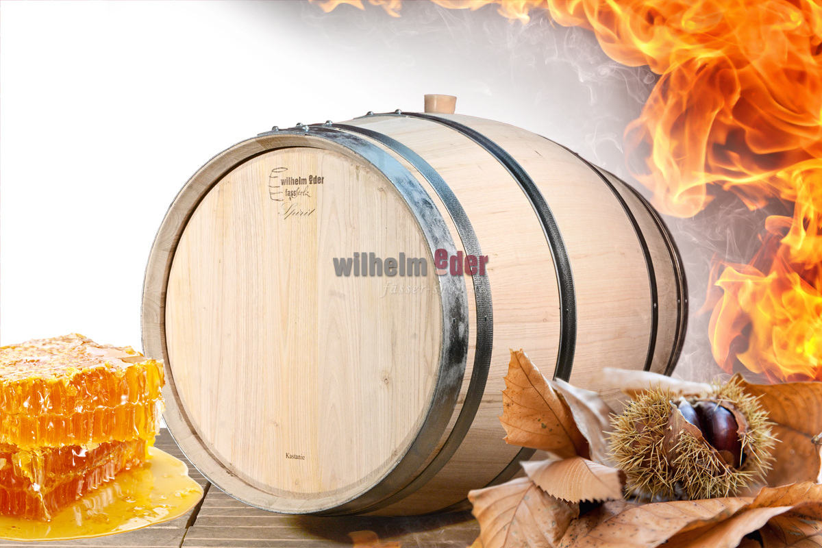 Barrique aus Kastanienholz 228 l mit Silikonspund der EDER-FassStolz® Serie. Ein Fass ausgestattet mit einem Doppeltoast für volles Volumen und Power. Für hohen Charakter in Mundgefühl und Komplexität. Ideal zur Reifung von Korn, Whisky und Weinbränden.