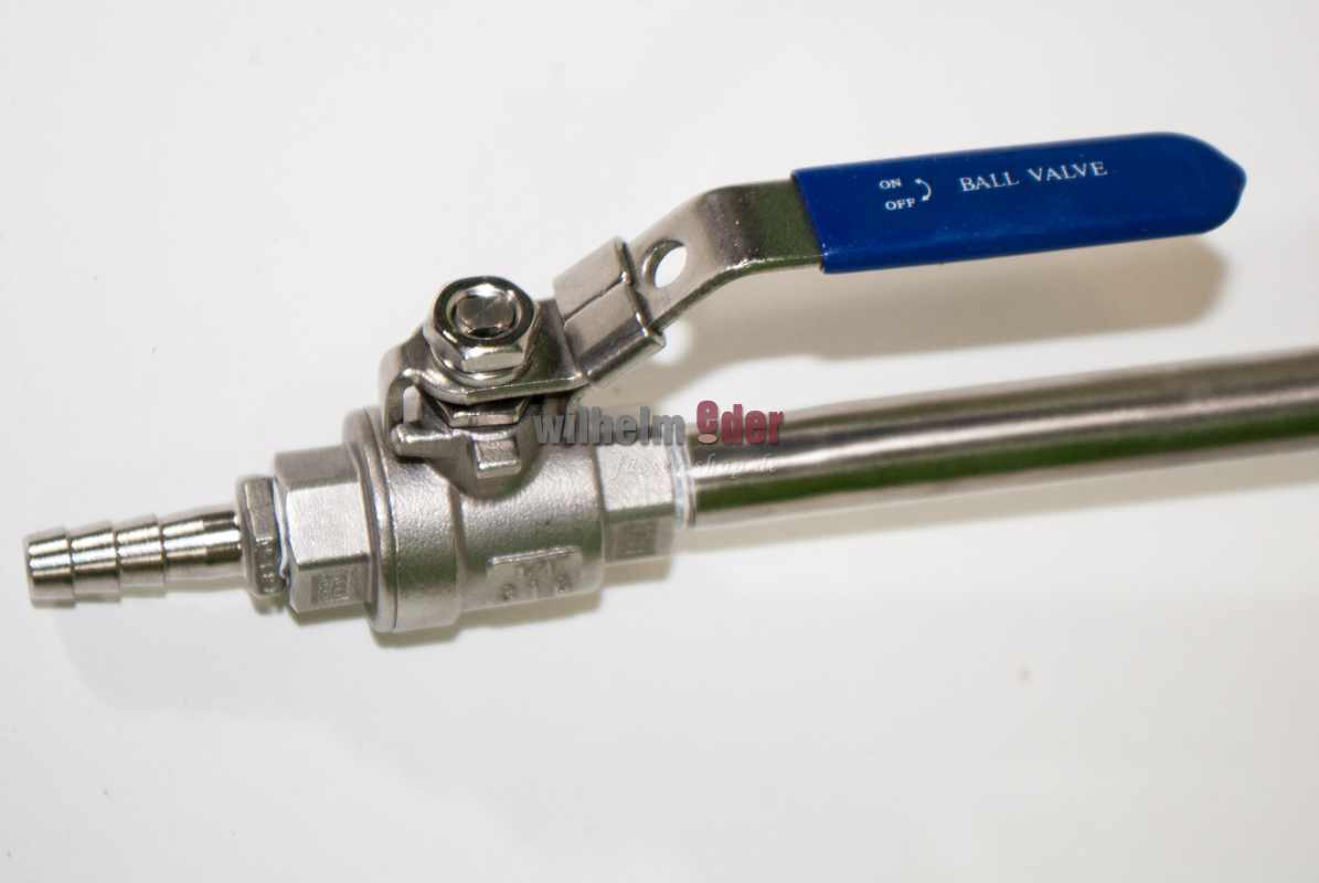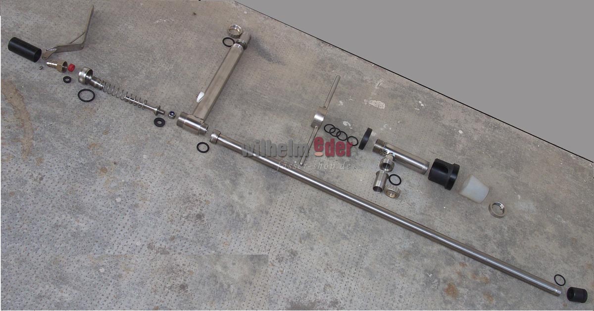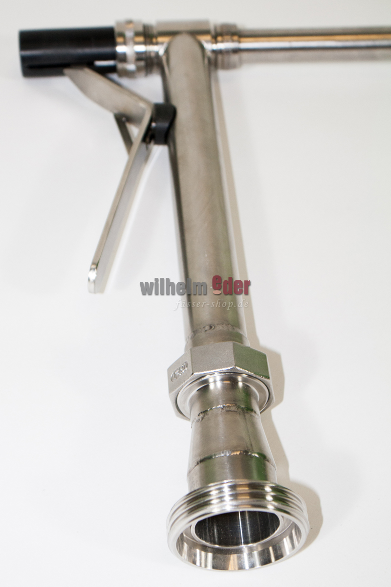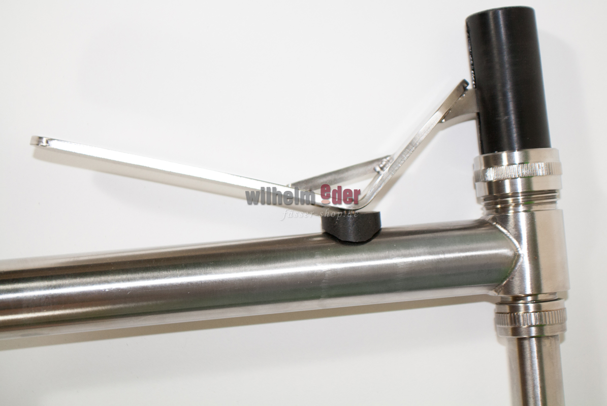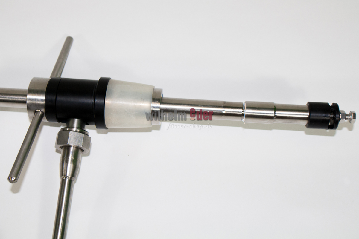 Druckluftheber zum Betrieb mit ölfreier Druckluft oder CO2, gefertigt aus Edelstahl, zur schonenden Entleerung eines Holzfasses. Das Gerät ist ebenfalls für die Entleerung von Destillaten und Bieren geeignet.