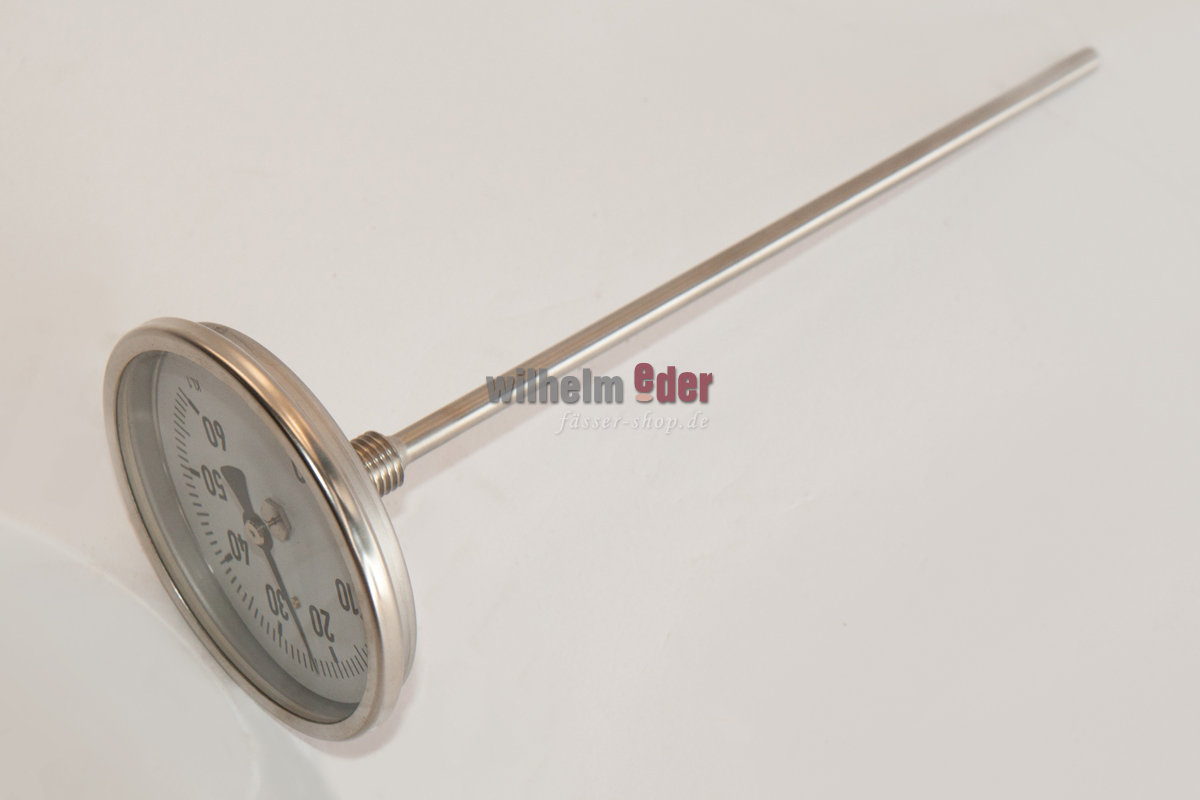 Thermometer aus V4A Edelstahl mit Glycerin Füllung für Maischetank und Kühlplatten.