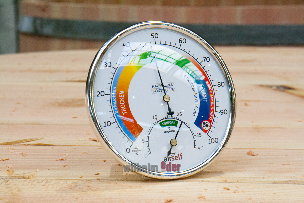 Das Thermo-Hygrometer misst die Temperatur und die Luftfeuchtigkeit in Räumen. Für die richtige Fasslagerung sind dies kritische Faktoren.