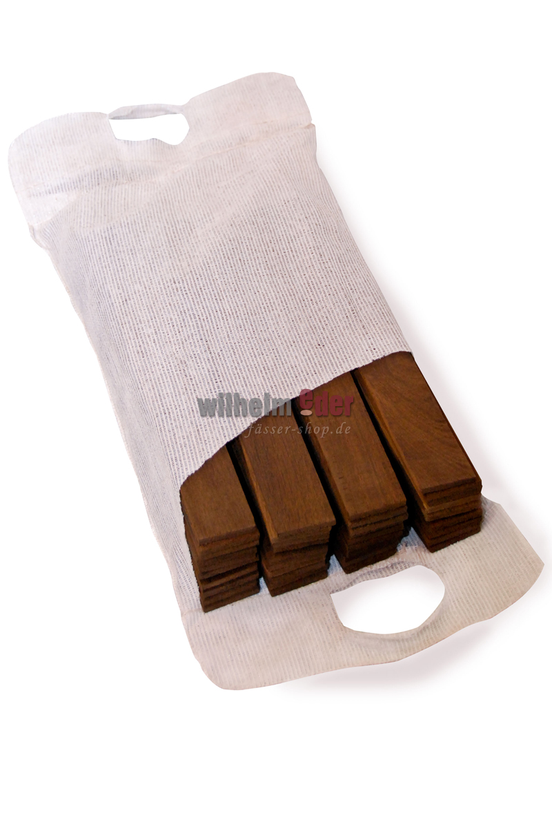 Alle Staves werden von uns auf Wunsch für den Einsatz und die Einbringung in Holzfässer mit kleinen Spundöffnungen passend geschnitten und in Schlauchverbände verpackt. Dies können Sie unter Zubehör wählen.