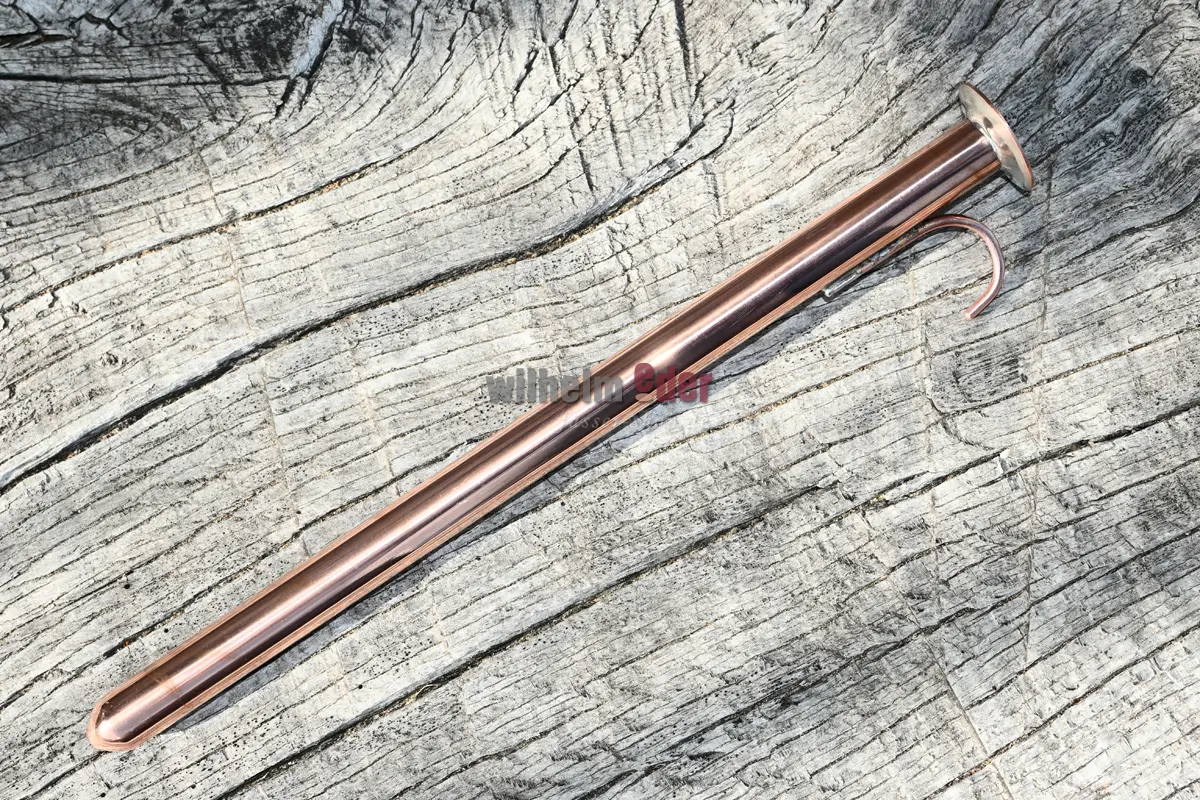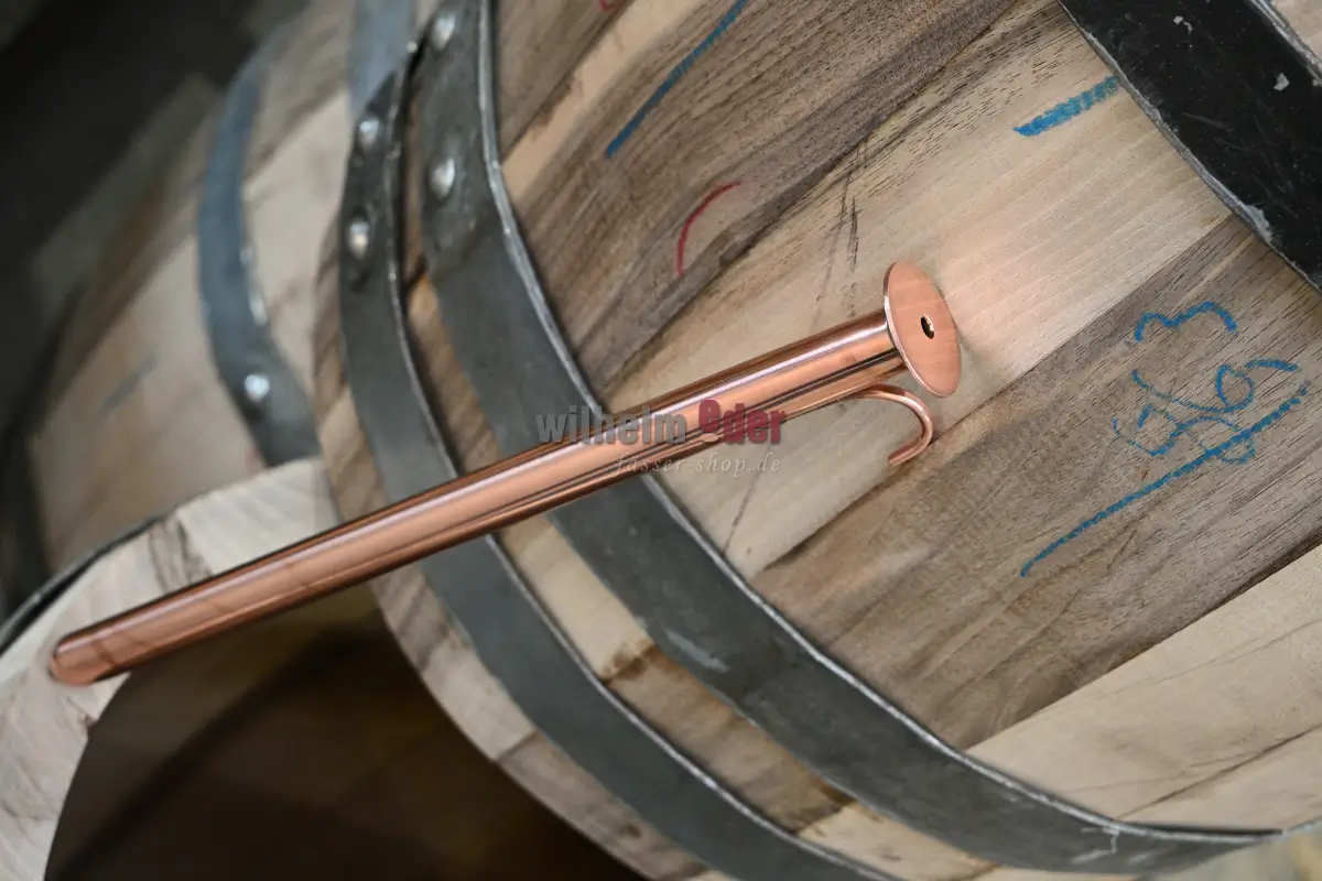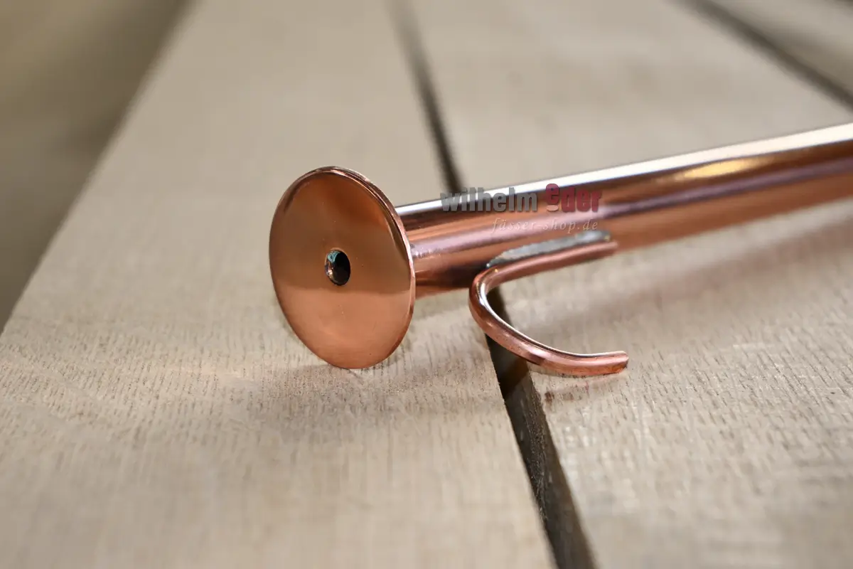 Handgefertigter Probenheber aus Kupfer zur Entnahme von Destillatproben aus dem Holzfass.
