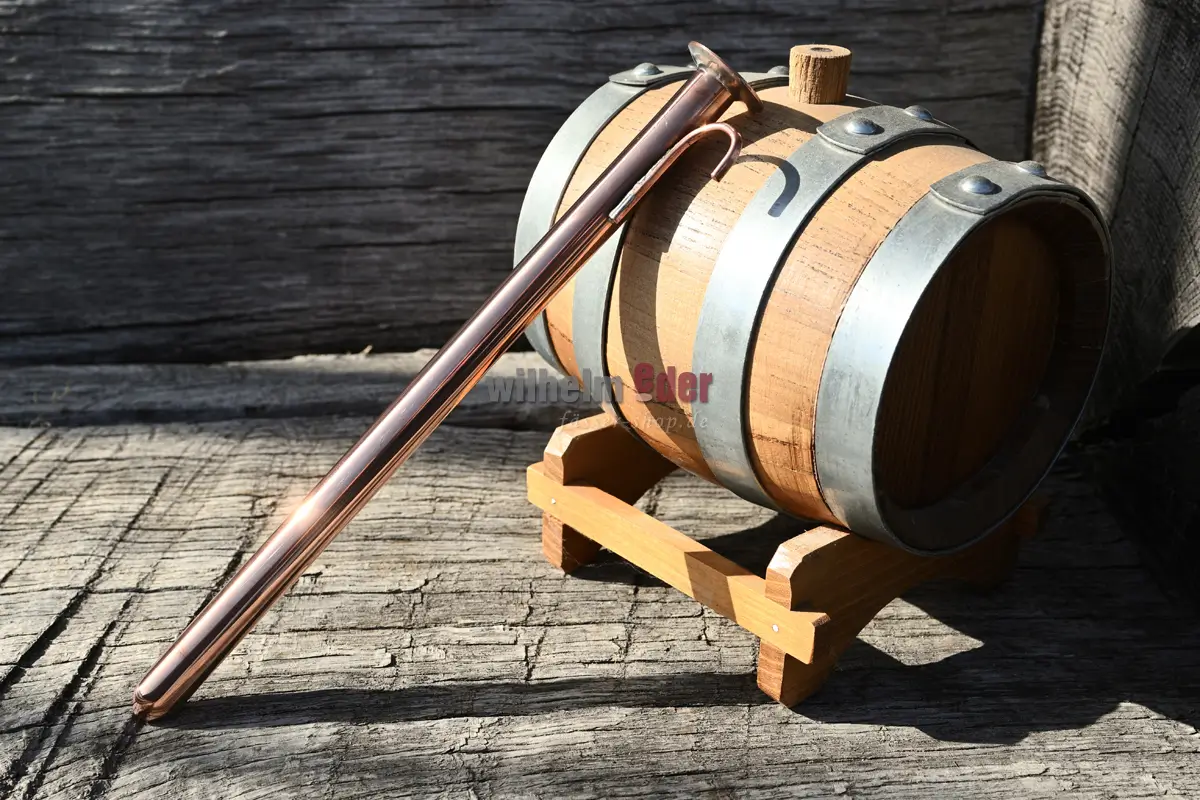 Wer sich Destillaten verschrieben hat und sich für den gewissen Luxus begeistern kann, findet mit dem Probenheber aus Kupfer das gewisse Etwas. Der Probenheber ist nun nicht mehr nur ein unabdingbares und praktisches Zubehör, sondern auch ein optischer Hingucker. Für die richtige Verkostung und auch Präsentation von Destillaten ist der -wohl besser- Destillatheber das I-Tüpfelchen.