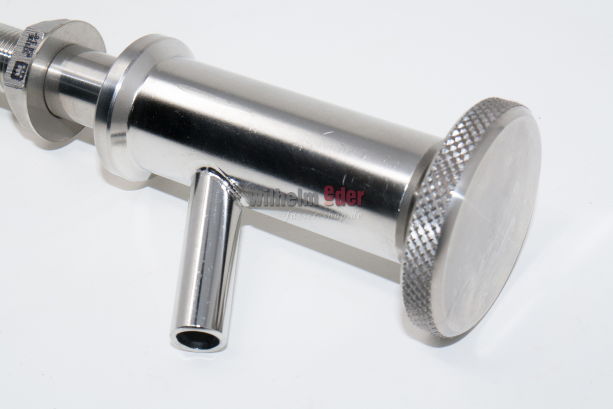 Ventil zur Probeentnahme für Großfässer. Fertig eingebaut mit innen liegender Kontermutter und außenliegender großer U-Scheibe.