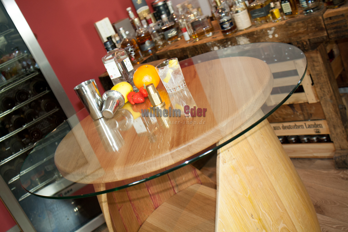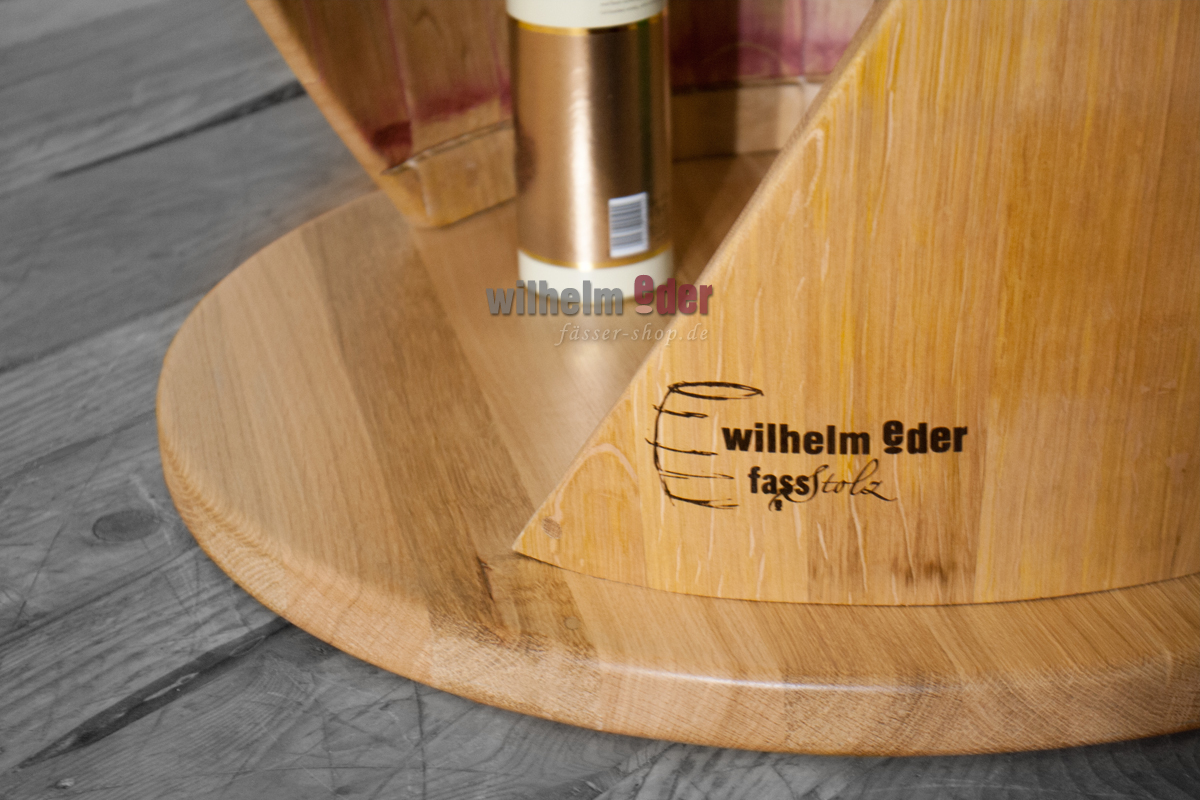 Vor der Herstellung von Regalen lassen wir die Fässer trocknen und verleimen die Dauben einzeln. Dieser aufwendige Prozess gewährleistet die Stabilität des Regals und verhindert, dass das Holz sich aufgrund Temperaturschwankungen verzieht. Bitte beachten Sie trotzdem, dass allzu trockene und warme Heizungsluft dem Fass nicht guttut.
