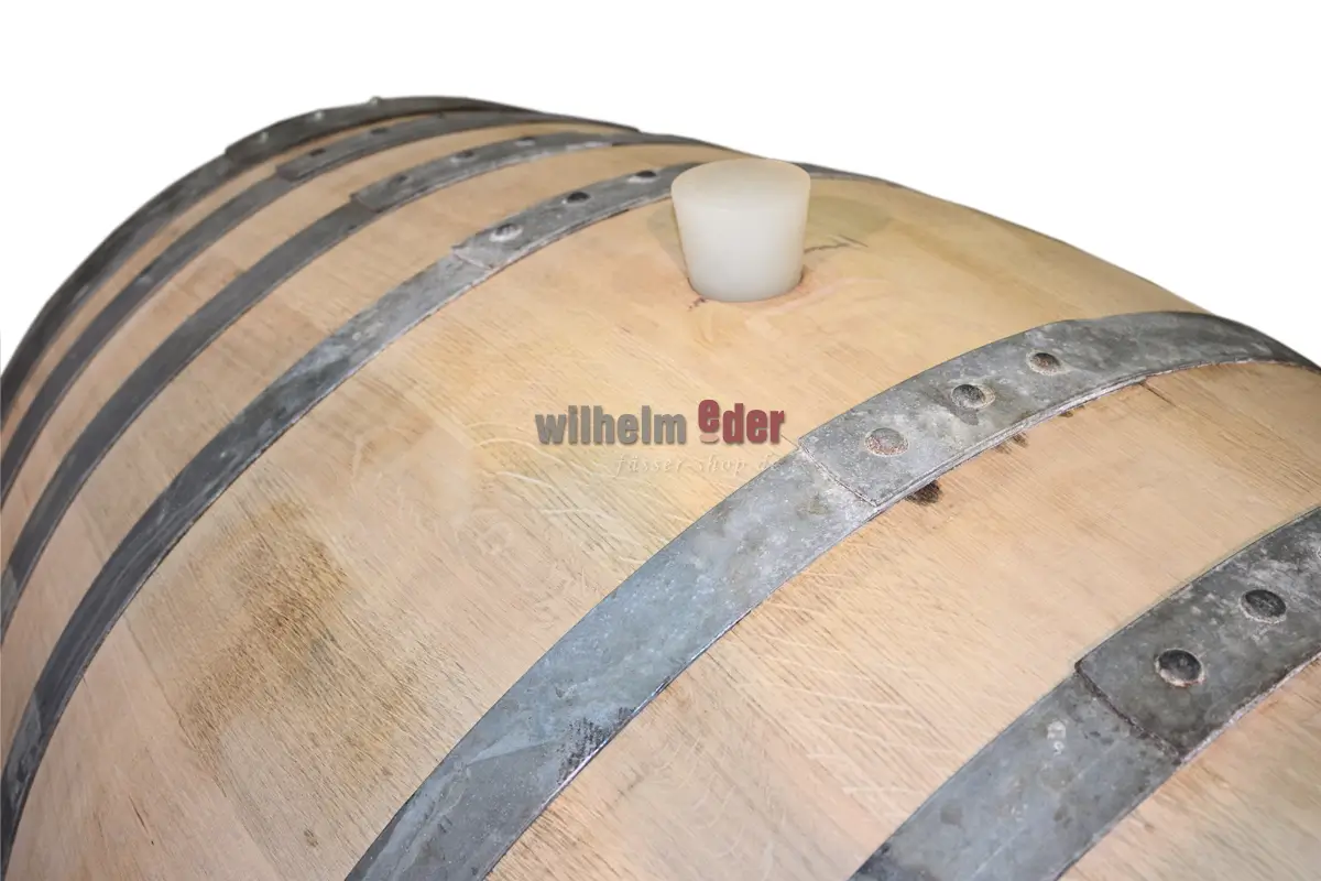 Standardmäßig sind die Fässer mit einem gebrauchten Holz- oder Plastikstopfen ausgestattet. Wenn Sie einen neuen Silikonspund wünschen, können Sie diesen unter Zubehör bestellen (Typ Standard – C16 oder C20).