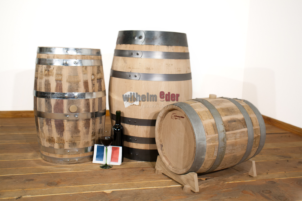 Rotwein: Rückbauten aus frisch entleerten, aromareichen Rotwein-Barriques 225 l aus der Region Bordeaux, dem Bordelais.