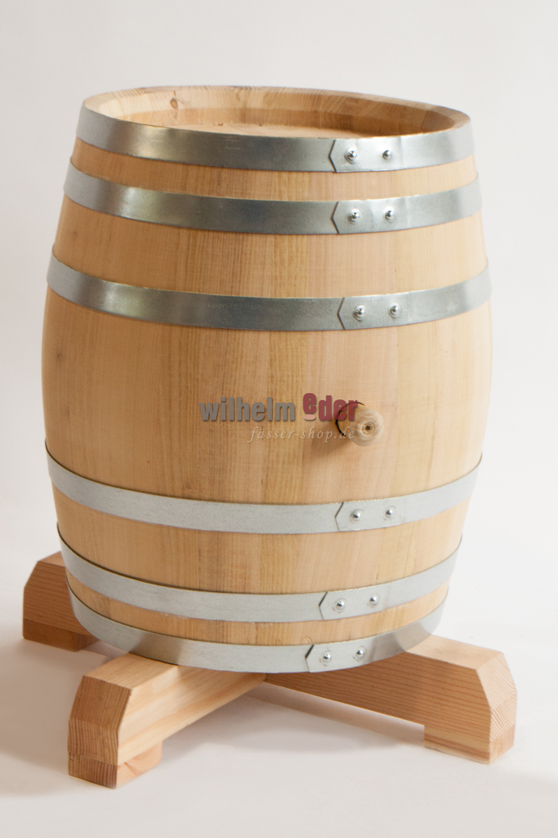 Regentonne aus einem gebrauchtem, hellem Barriquefass aus Eichenholz mit schwarzen oder verzinkten Reifen. Der Deckel ist herausgetrennt und mit einem Holzgriff versehen. Das Fass ist erst wenige Jahre alt und deshalb erst wenig nachgedunkelt und in sehr gutem Zustand.Inklusive:- Eingebautem Ablaufhahn aus poliertem Messing als Wasserablauf - ¾“ Gewinde, so angebracht, dass sich der Auslauf ca. 25 cm über dem Fassboden befindet.- Unterstellkreuz aus Holz (natur) aus zwei Holzbügeln, die man ineinander setzen kann (Versand inkl. 2 Schrauben zur Selbstmontage)Farbabweichung möglich.Jedes Eichenfass ist ein Unikat. Unterschiedliche Färbungen entstanden durch den kostbaren Inhalt, der einst darin lagerte. Kleine Kerben im Holz oder kleine Unebenheiten sind keine Qualitätsmängel sondern vielmehr durch die Eigenart der Bauweise und die Vorbenutzung der Fässer bestimmt.