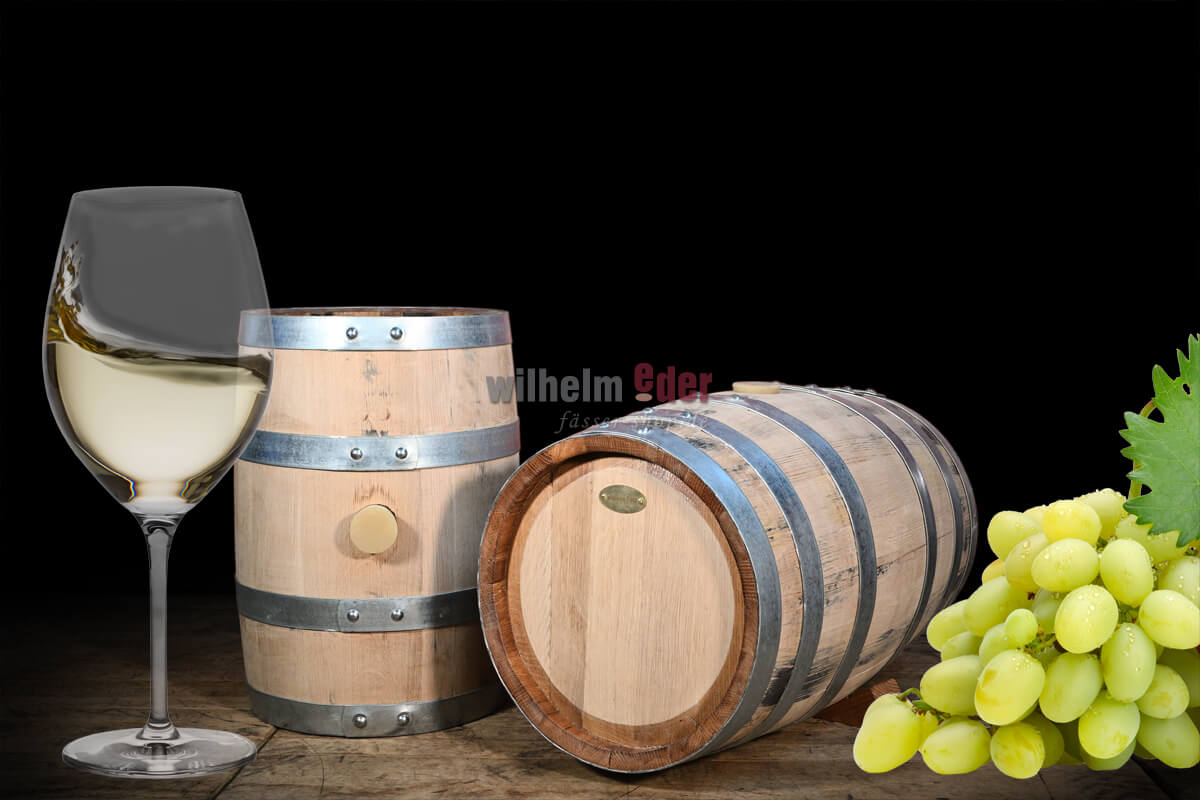 50 l Rückbauten aus frisch entleerten 225 l Weißweinfässern.