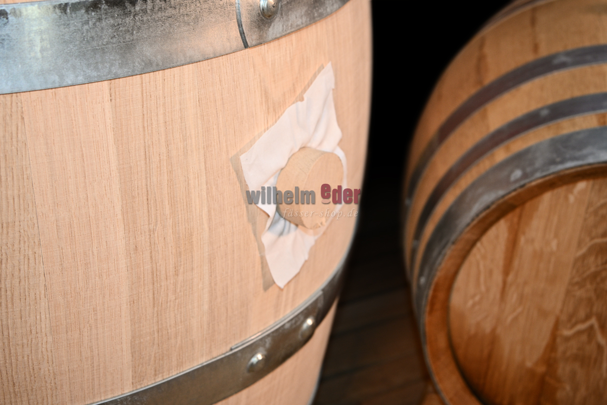 Frisch entleertes und ungeschwefeltes Süßweinfass 30 l - 100 l aus weißer Belegung.