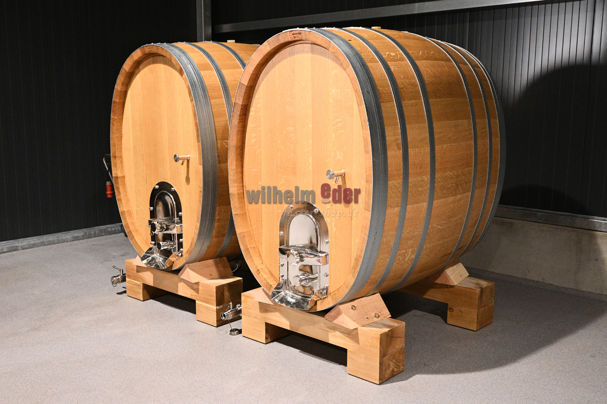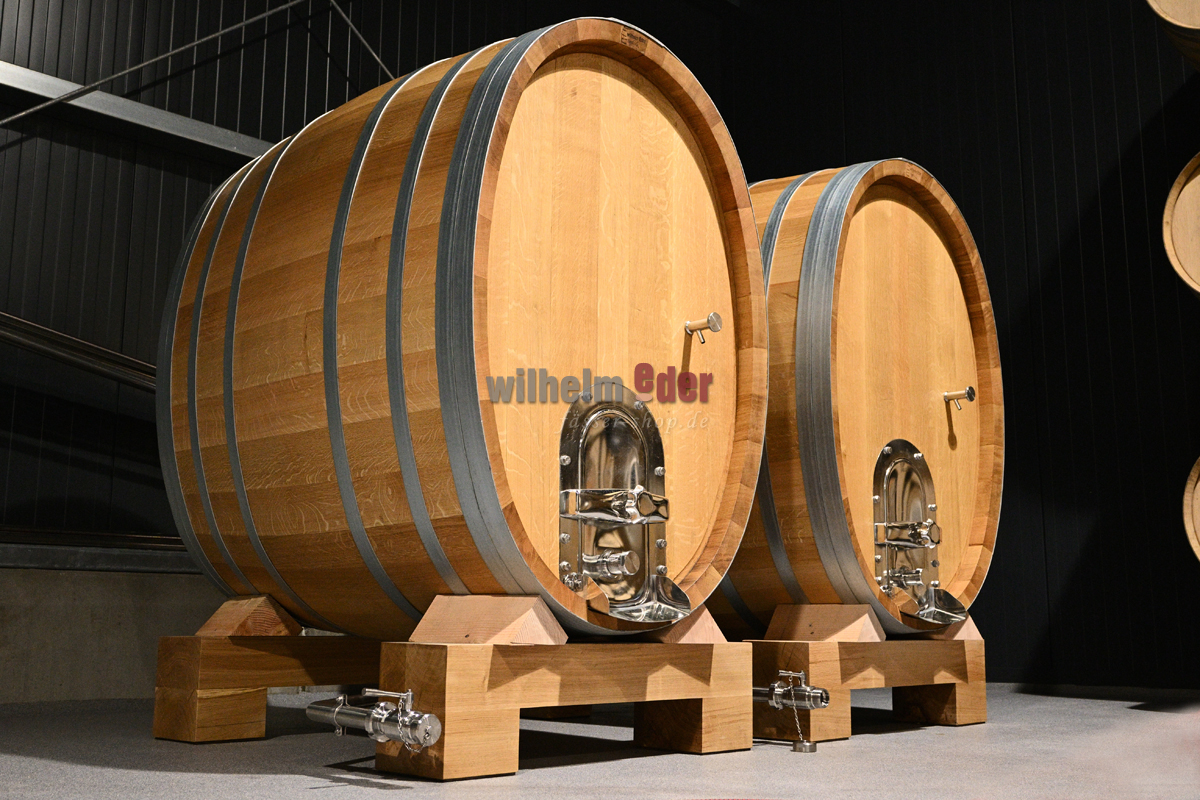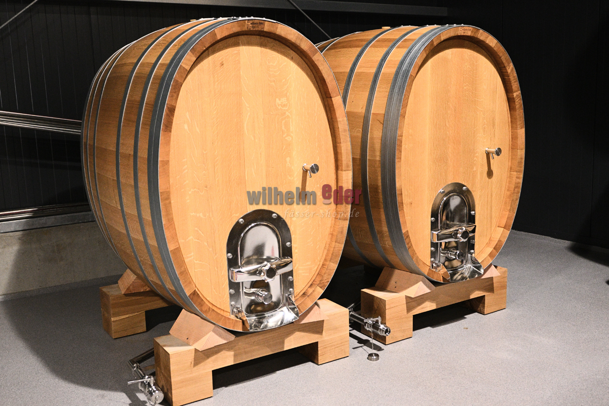 Ovale Holzlagerfässer mit einem Volumen von ca 1300 l. Dieses Fass wird im Volksmund auch "Stückfass" genannt.