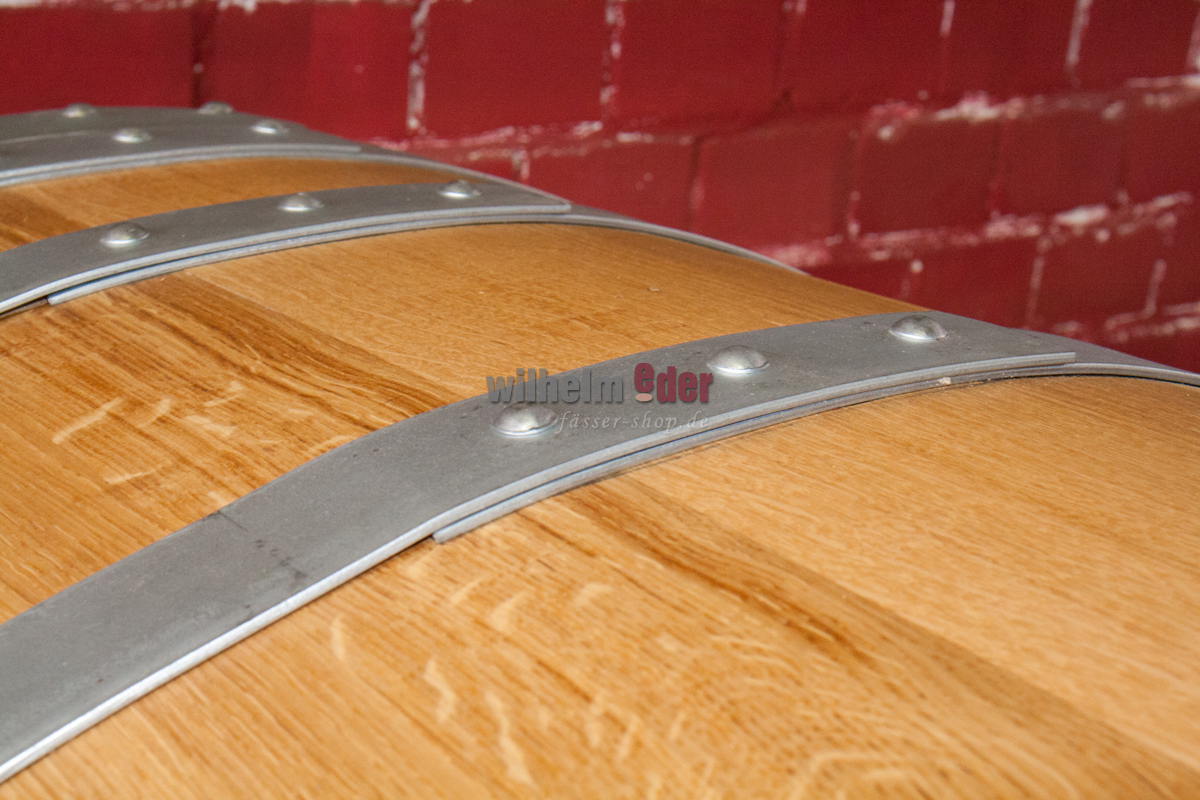 Die Fässer sind standardmäßig mit feuerverzinkter Bereifung und einer Holztür ausgestattet. Sie werden mit Leinöl oder einem klaren, lebensmittelzertifiziertem und atmungsaktiven Lack behandelt (Bitte bei der Bestellung unter "Kommentar" angeben).