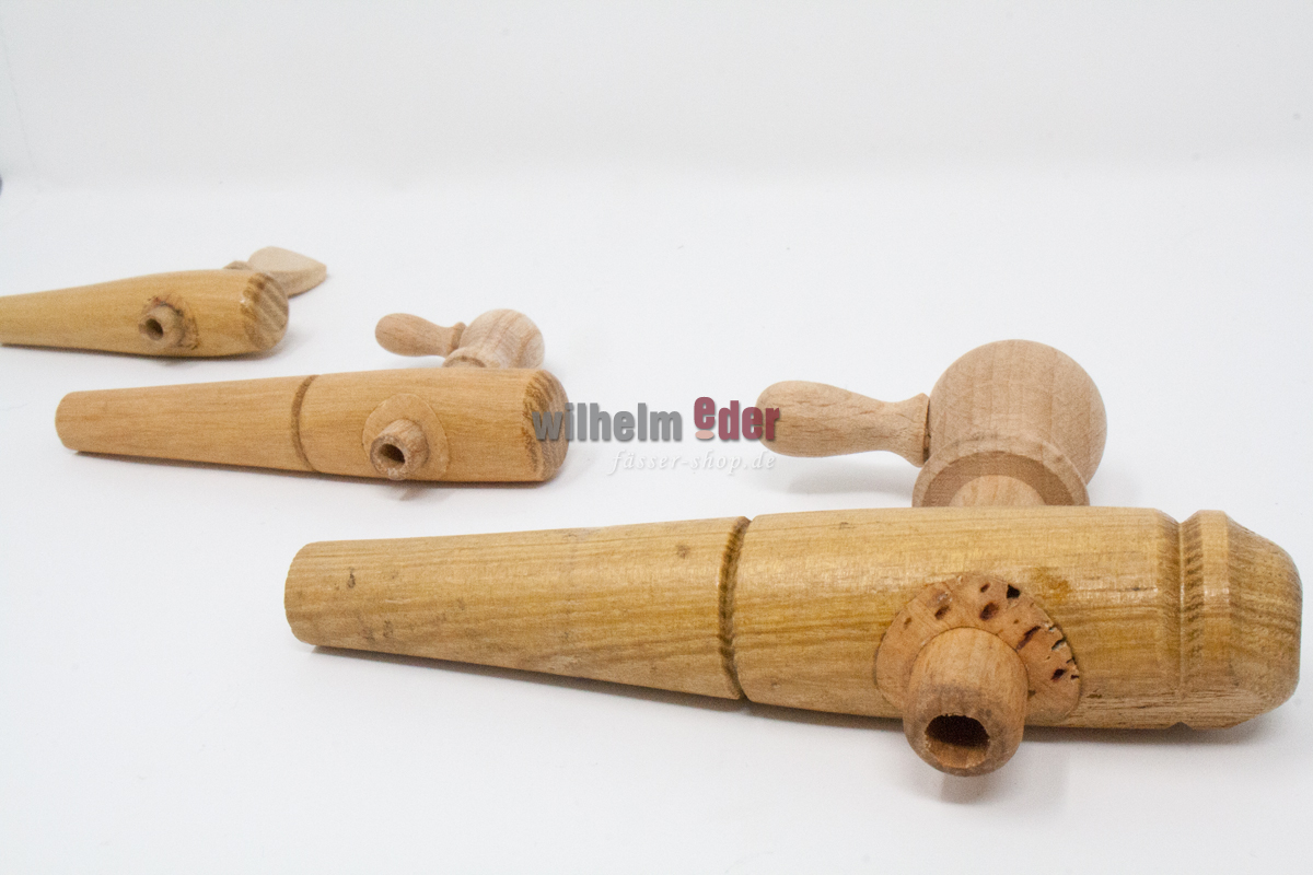 Zapfhahn aus Holz zum gelegentlichen Zapfen. Für den professionellen und dauerhaften Gebrauch bieten wir einen Zapfhahn aus Edelstahl an.